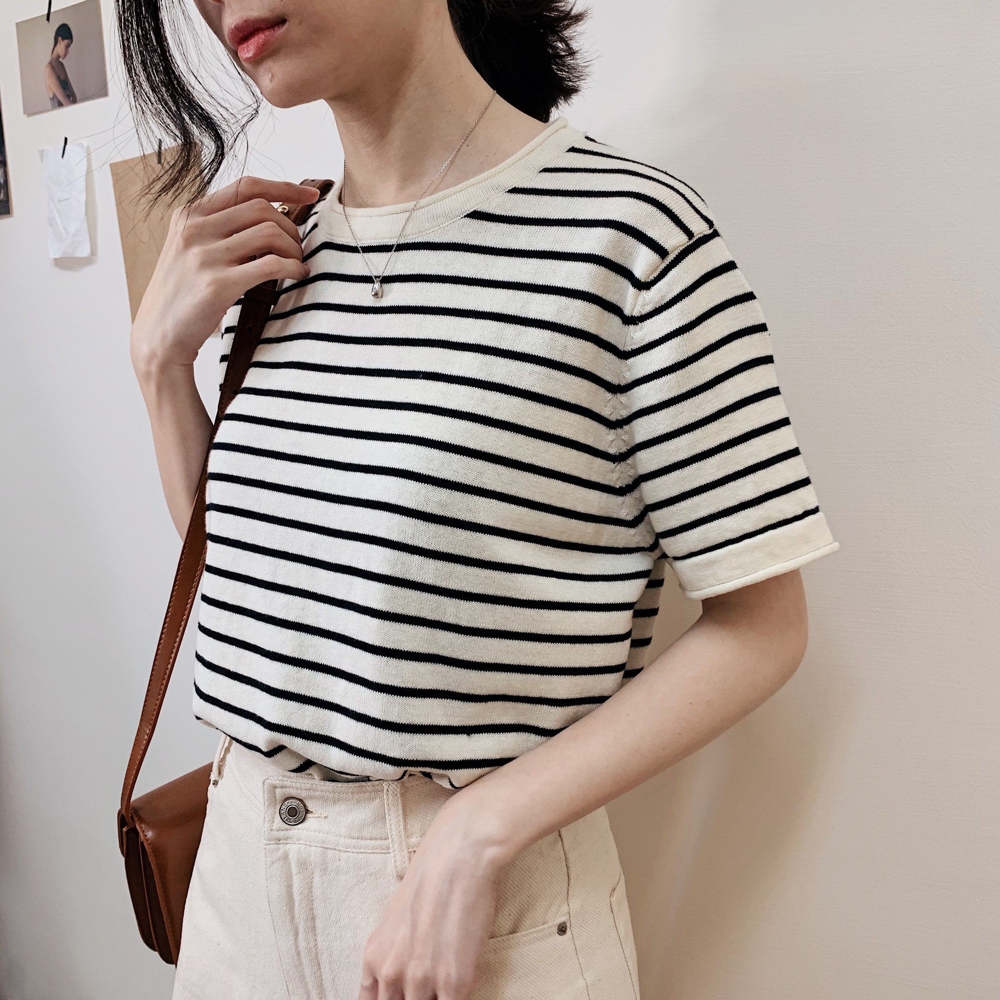#韓國 #東大門 #百搭 #韓系 #針織上衣 #條紋上衣 #針織短袖