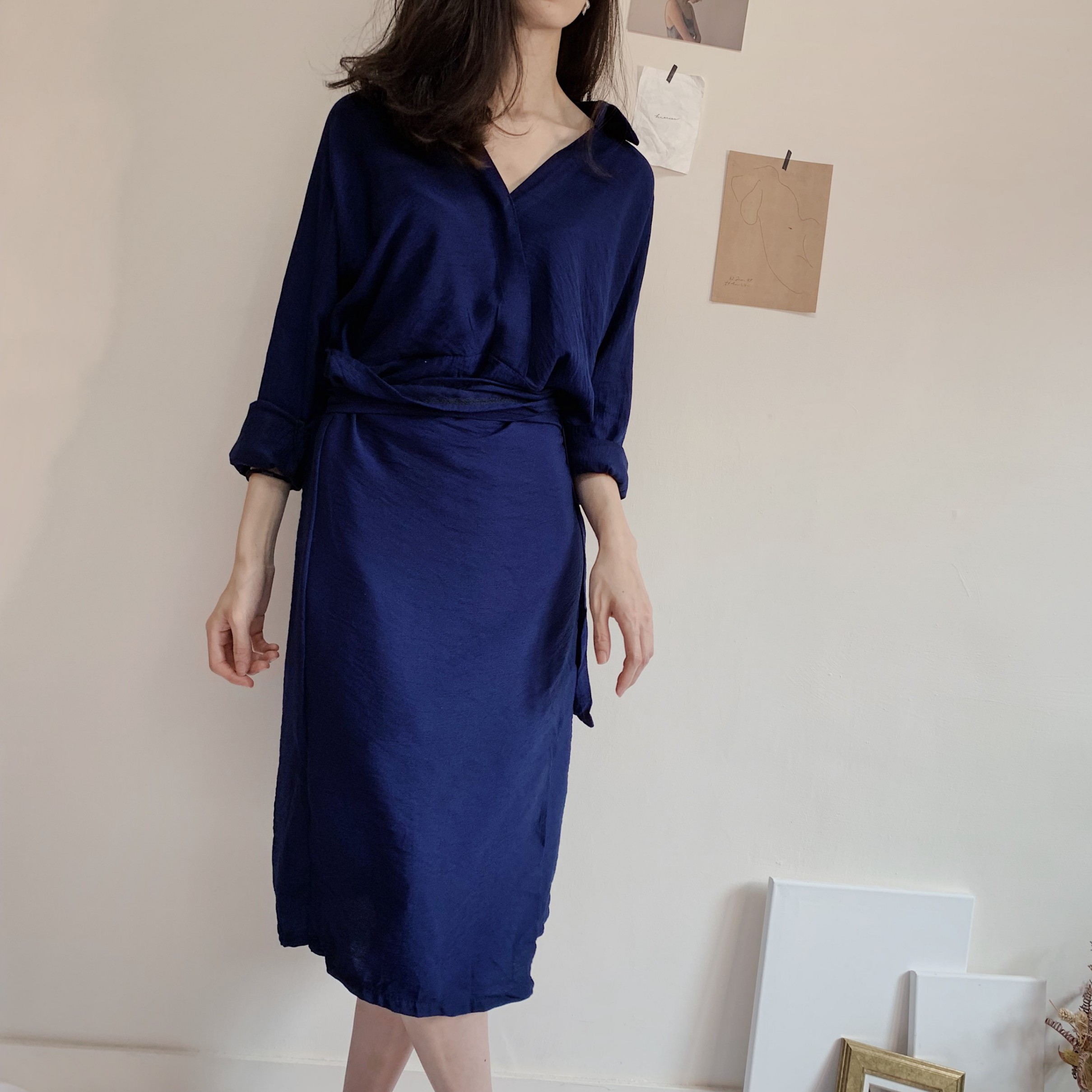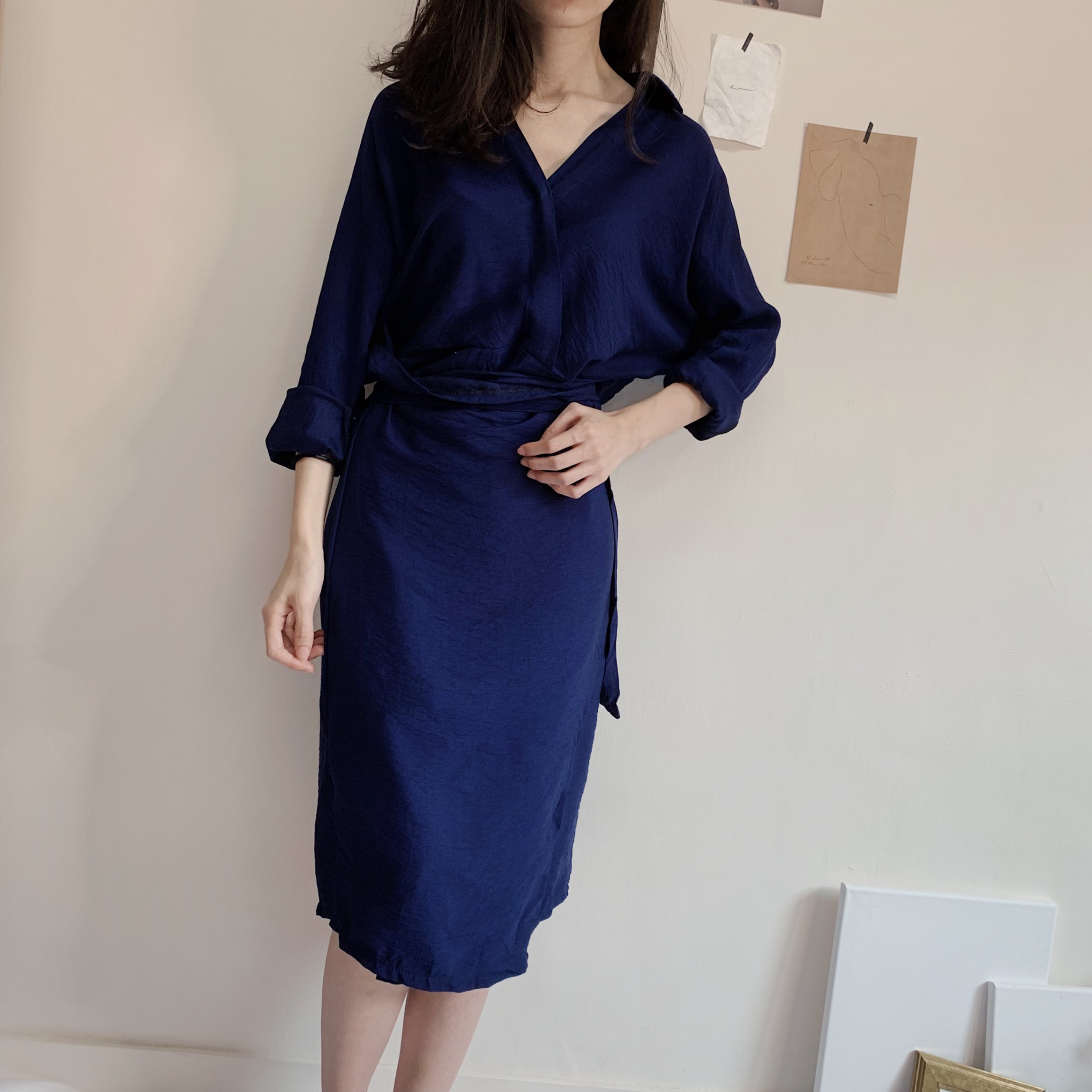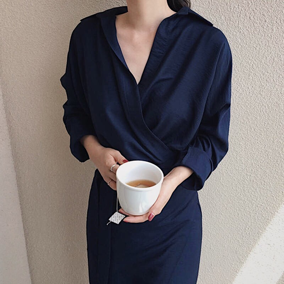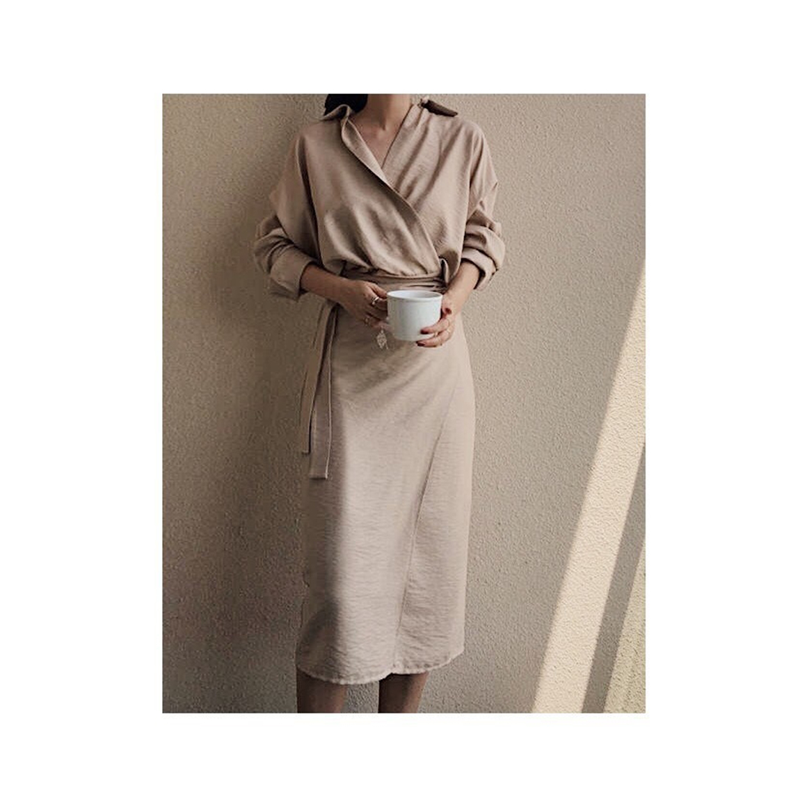 #韓國 #東大門 #百搭 #顯瘦 #設計感 #綁帶洋裝 #及膝洋裝 #雪紡洋裝 #秋冬必備 #基本款 #婚禮穿搭 #V領洋裝