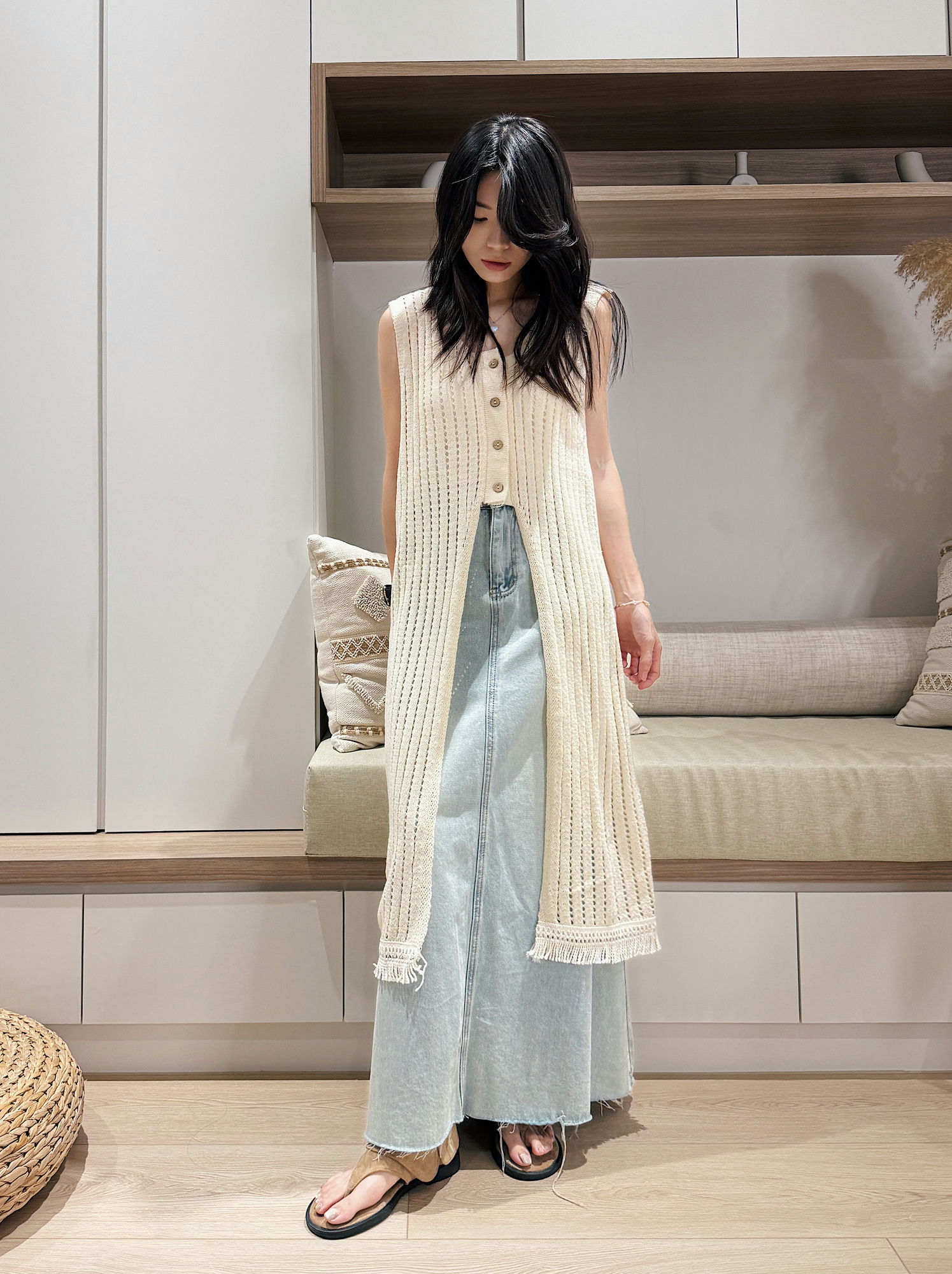 #韓國 #針織背心 #基本款 #長版背心 #罩衫 #針織罩衫 #波西米亞風 #渡假風穿搭