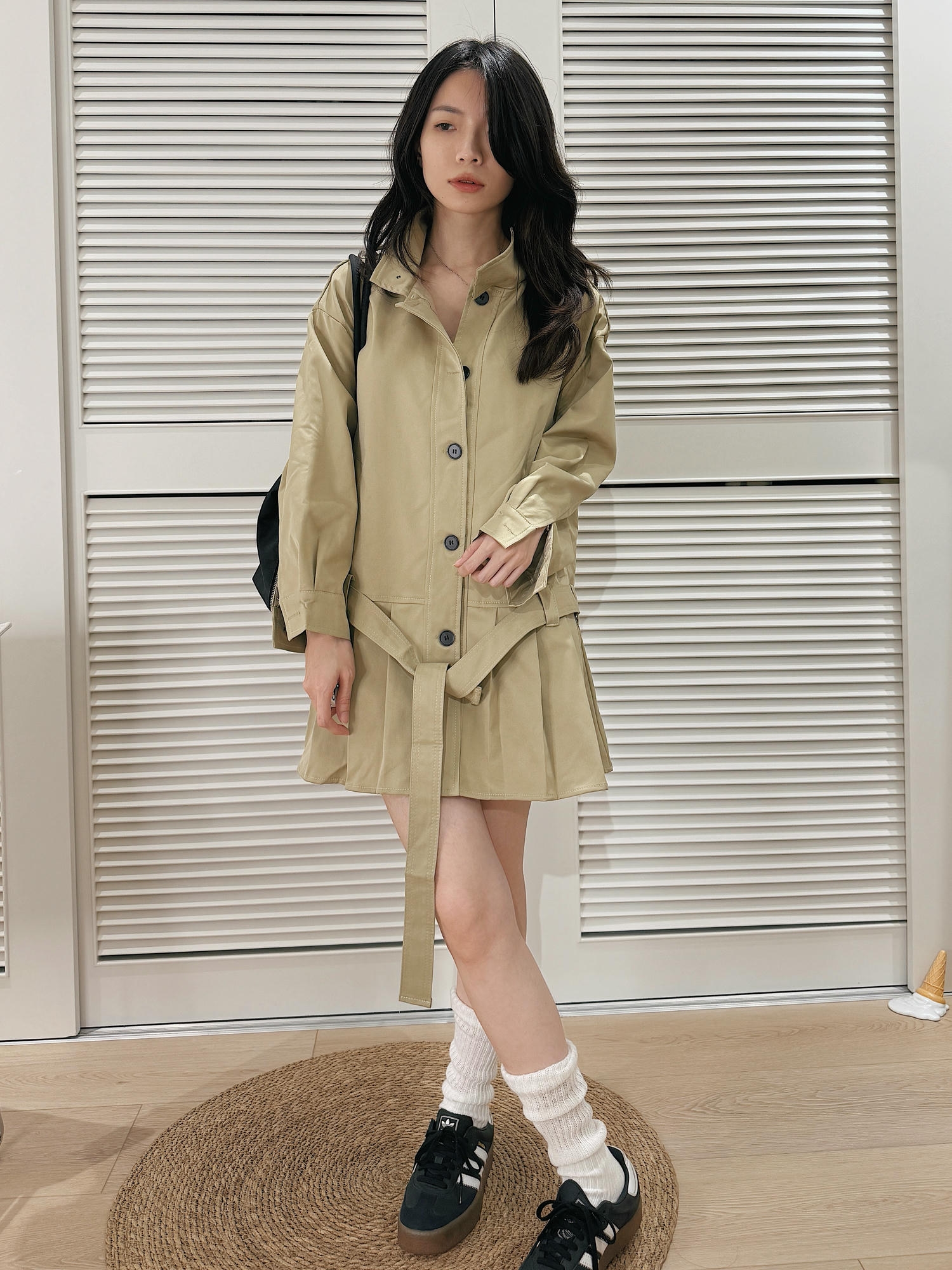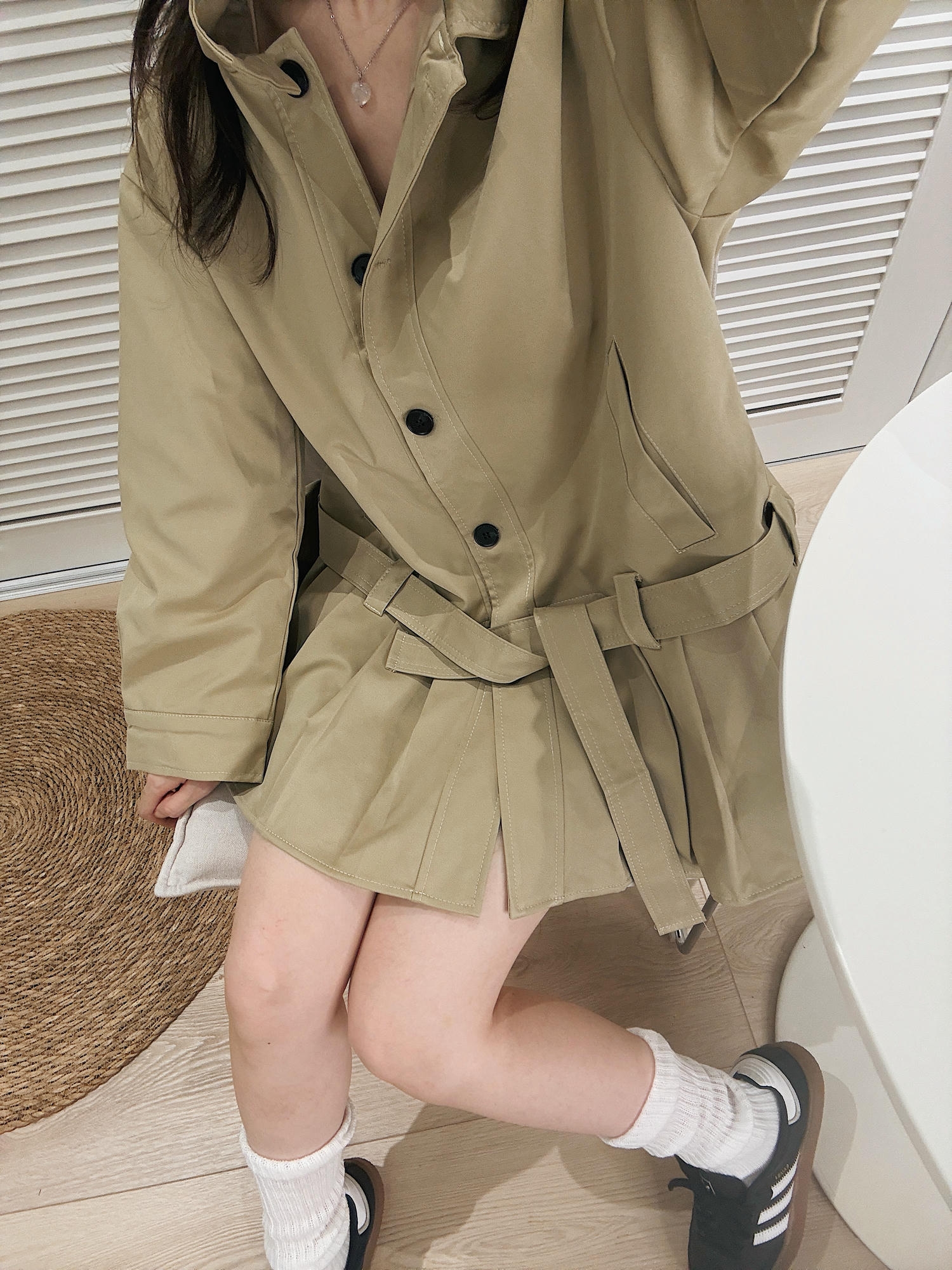 ・版型:短版風衣+百褶裙剪裁,打造輕盈俏麗比例。