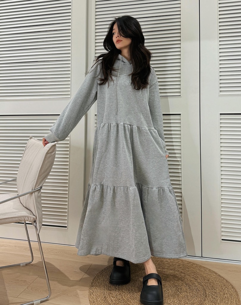 #韓國 #長版洋裝 #刷毛洋裝 #連帽洋裝 #休閒洋裝 #長袖洋裝 #帽T洋裝