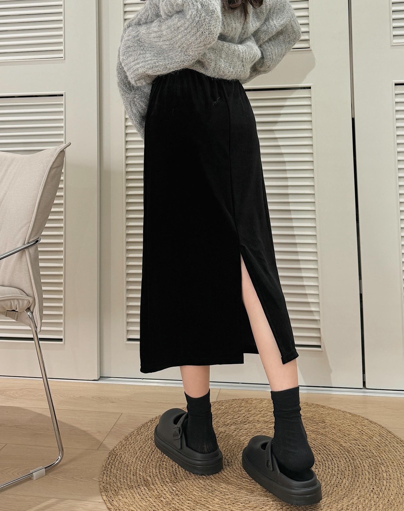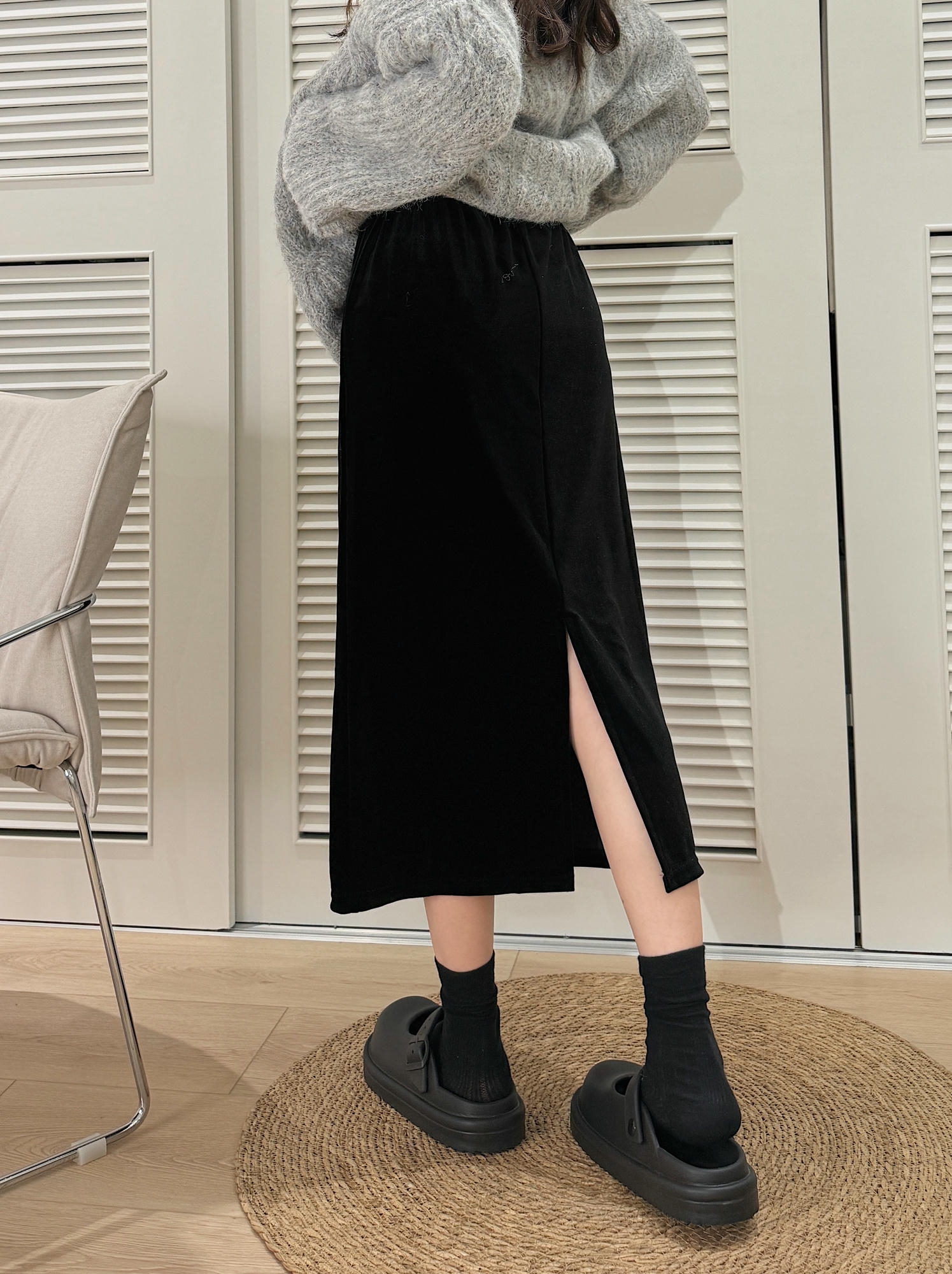#韓國 #高腰裙 #長裙 #開衩裙 #絨面裙 #秋冬裙 #尾牙穿搭 #正式穿搭