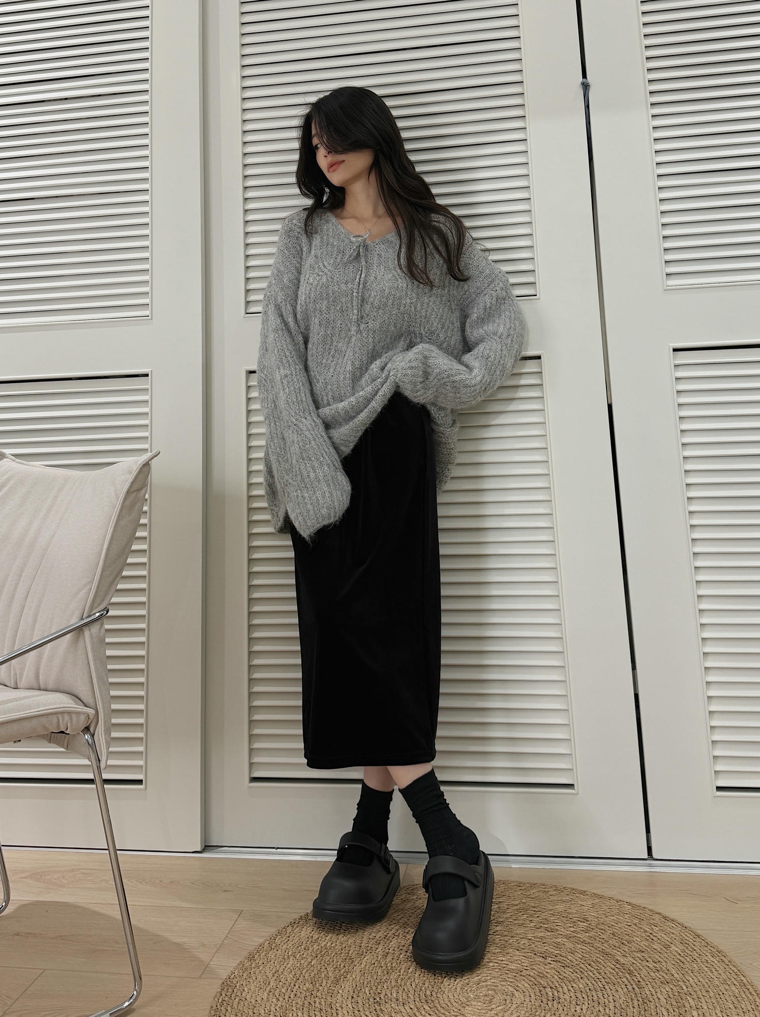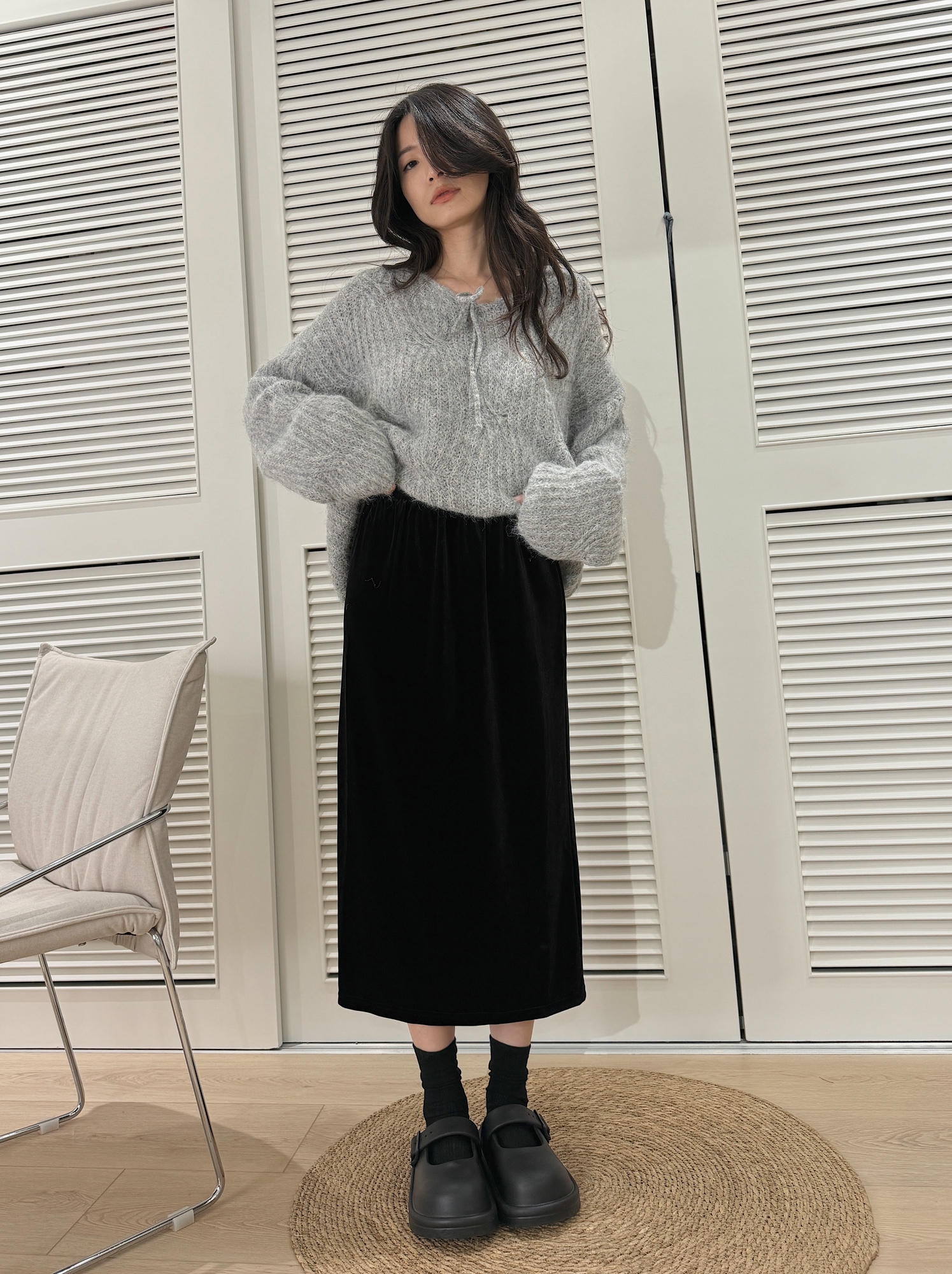 夜霧絲絨直筒裙(S-2XL) 20020244