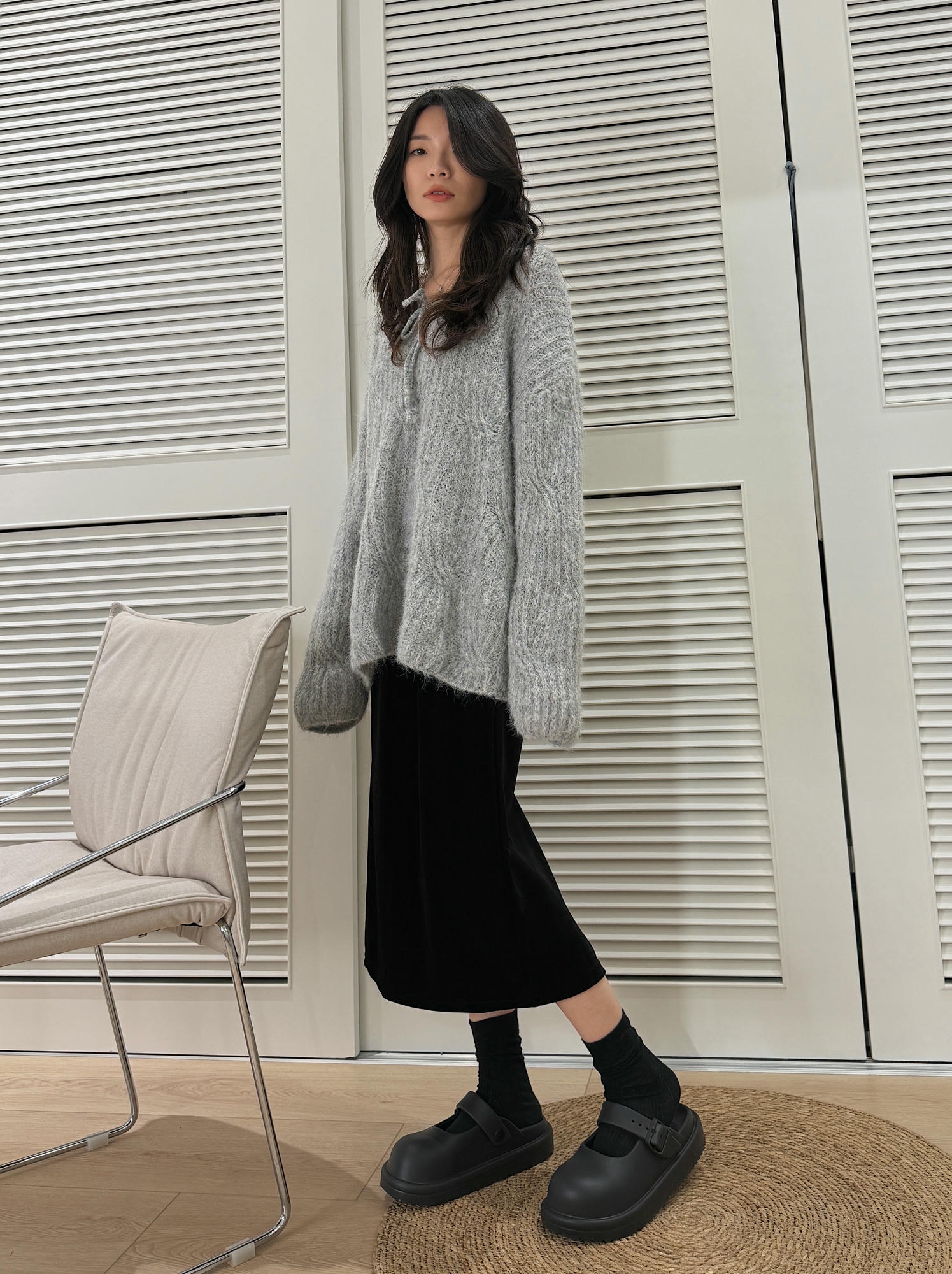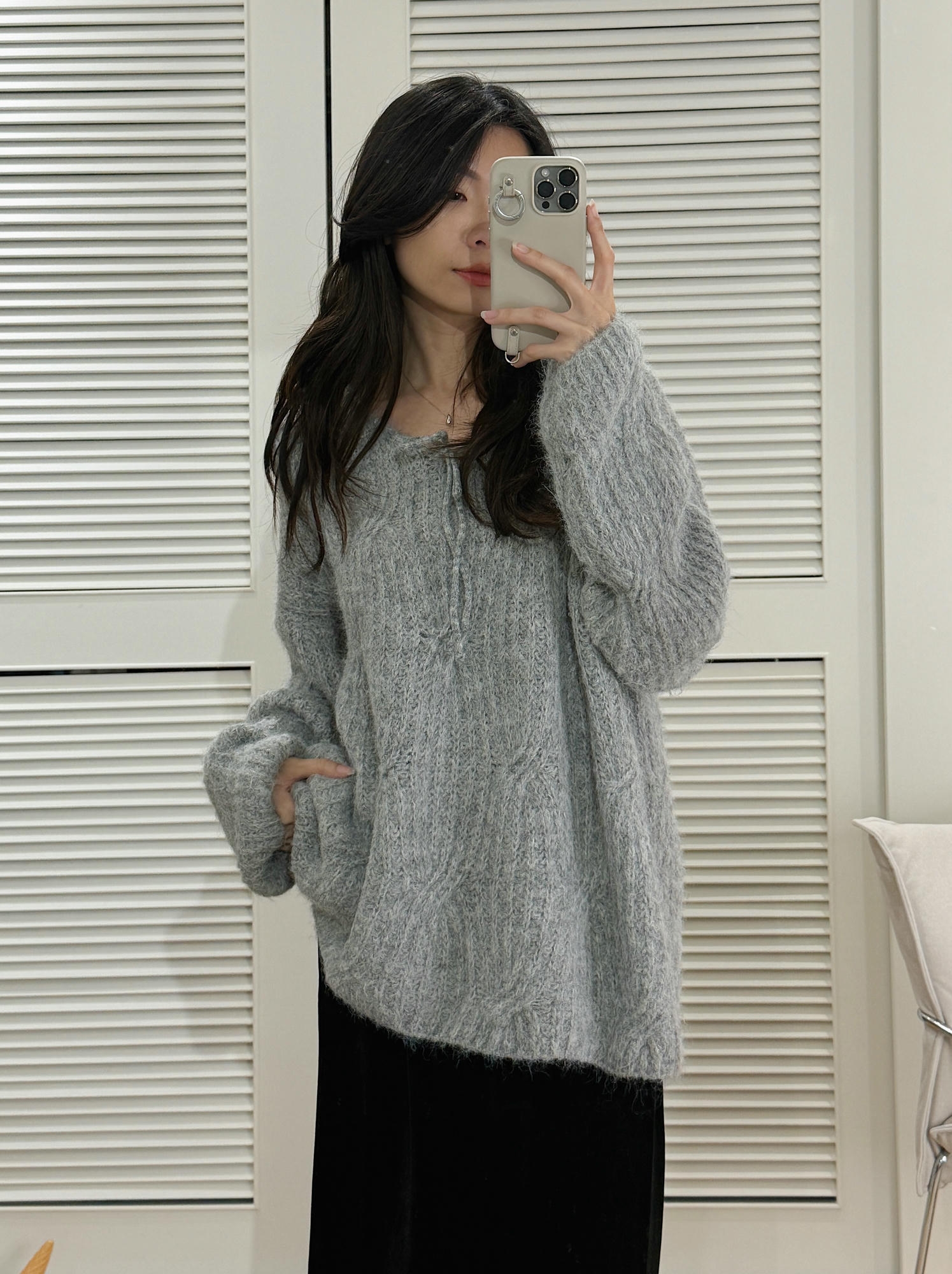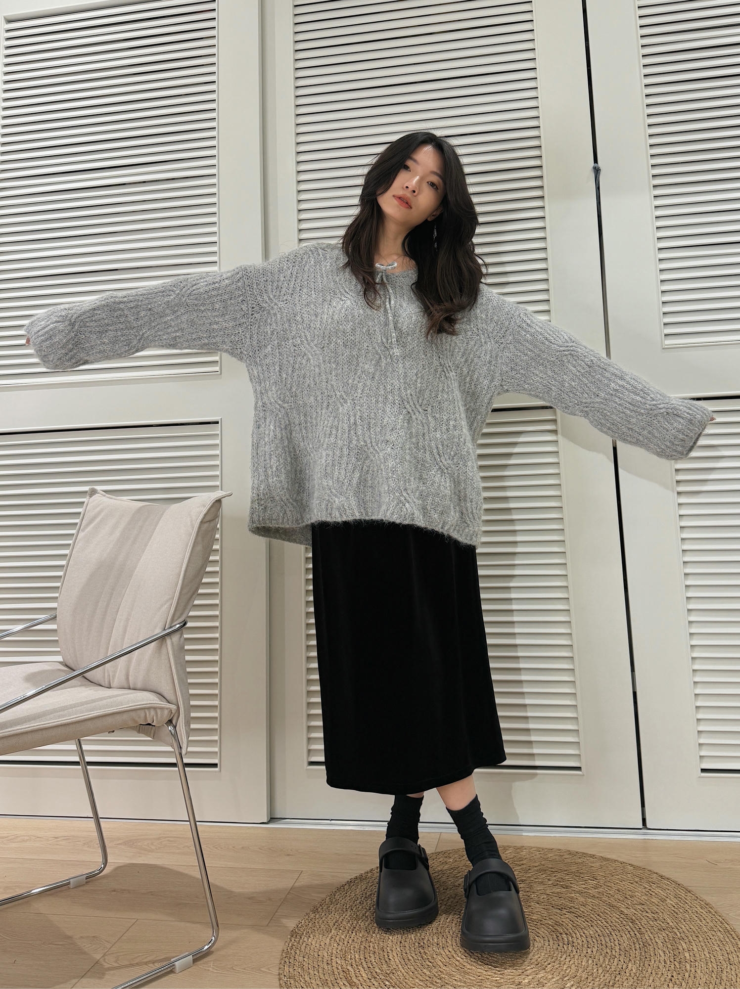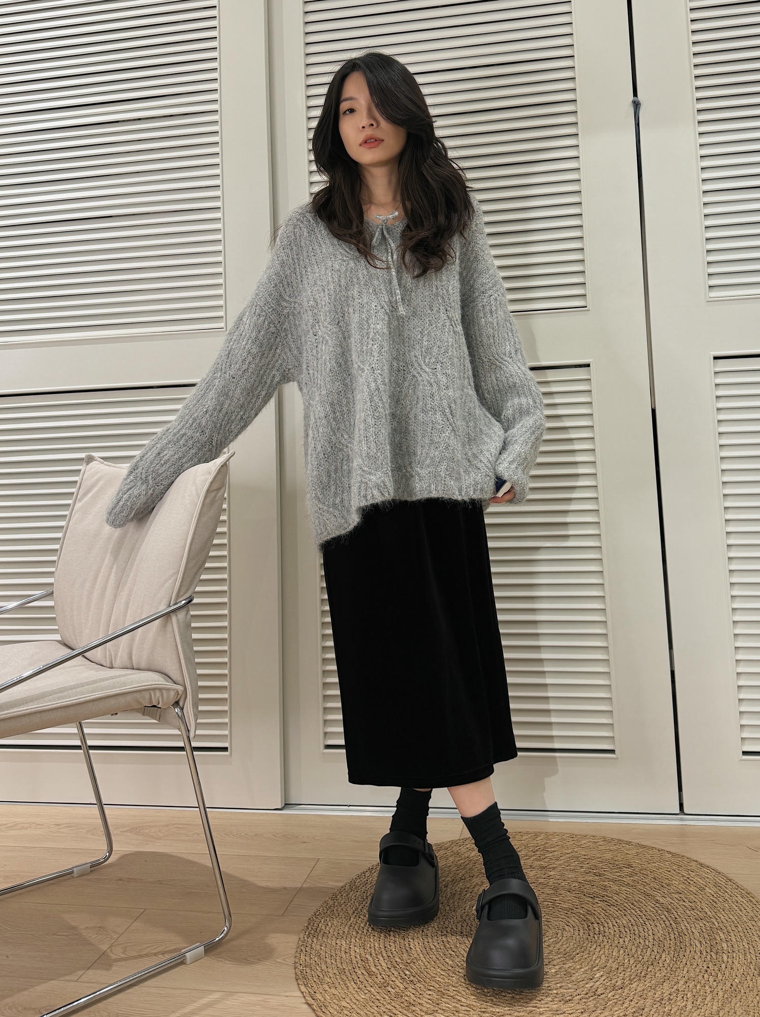 Soft Mist 雲灰系帶毛絨針織