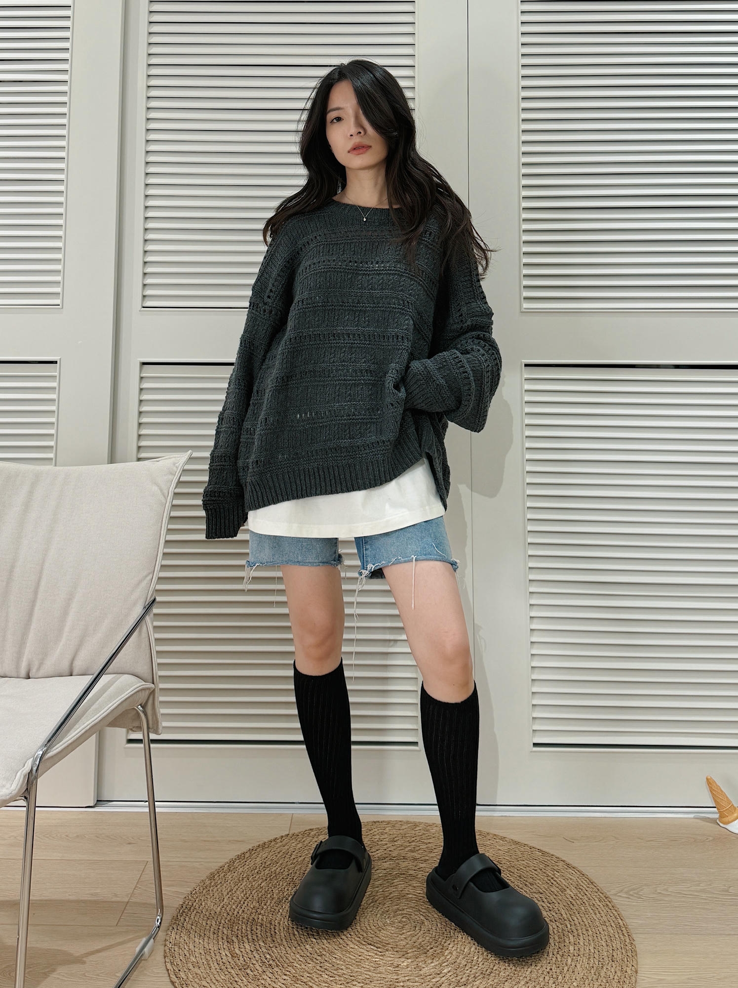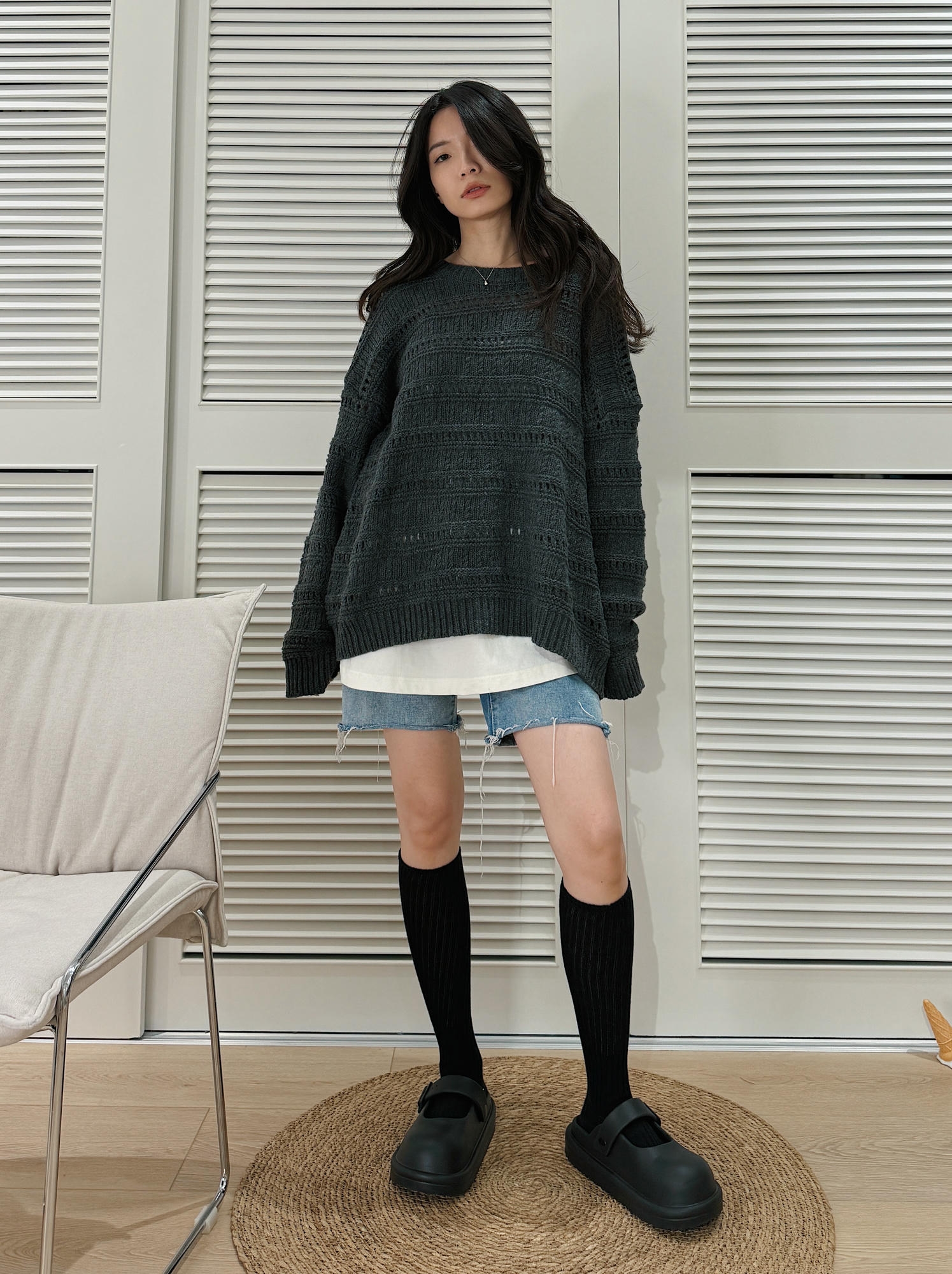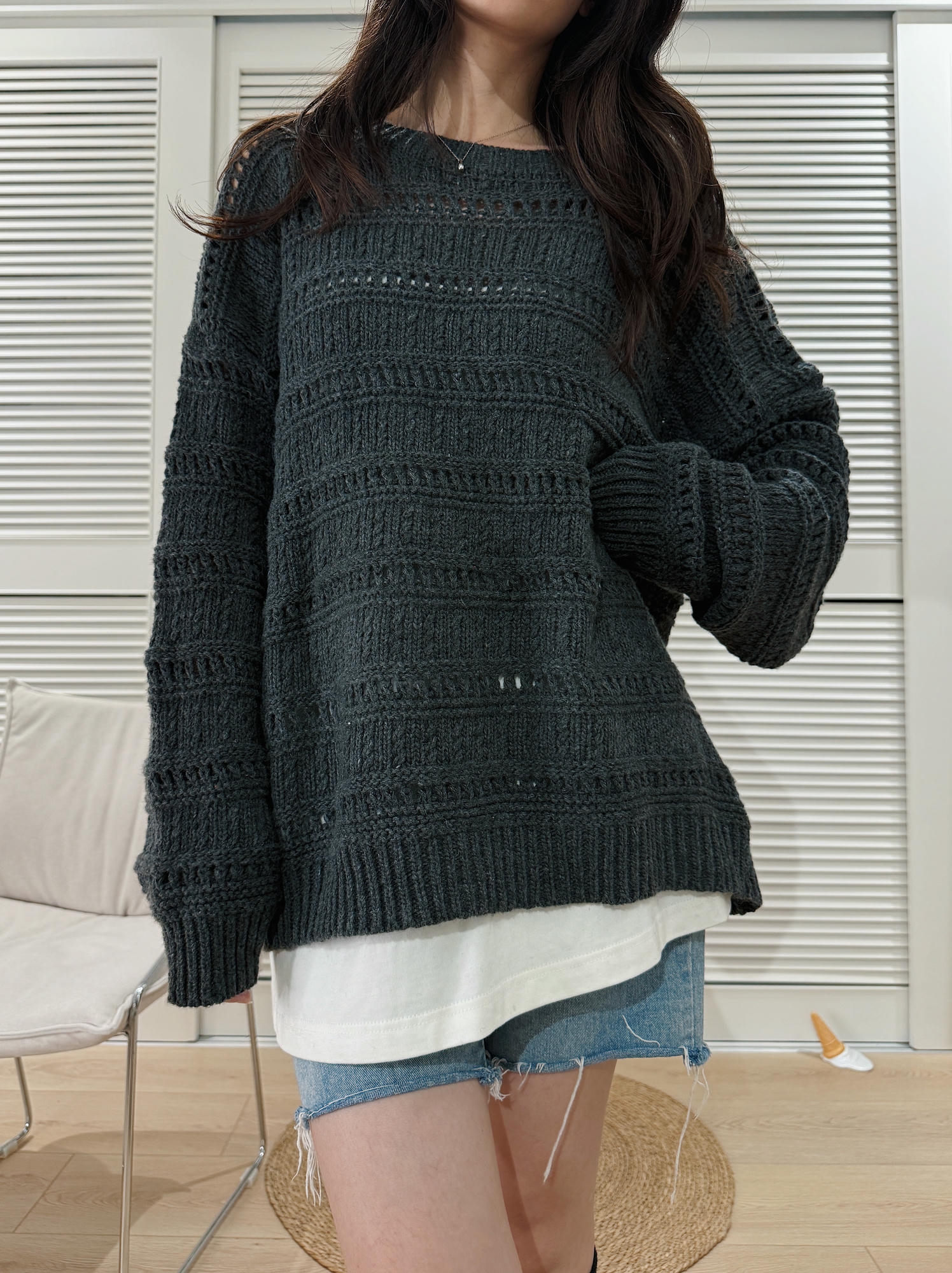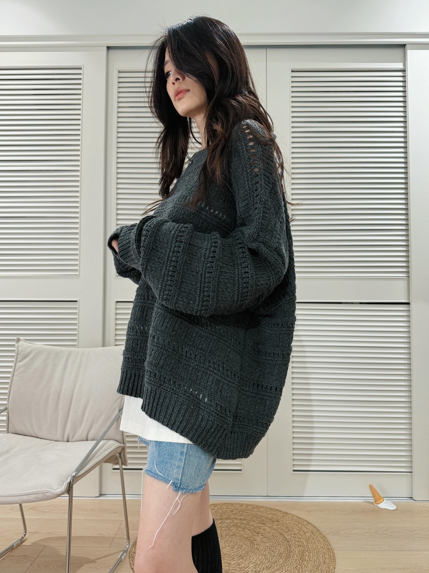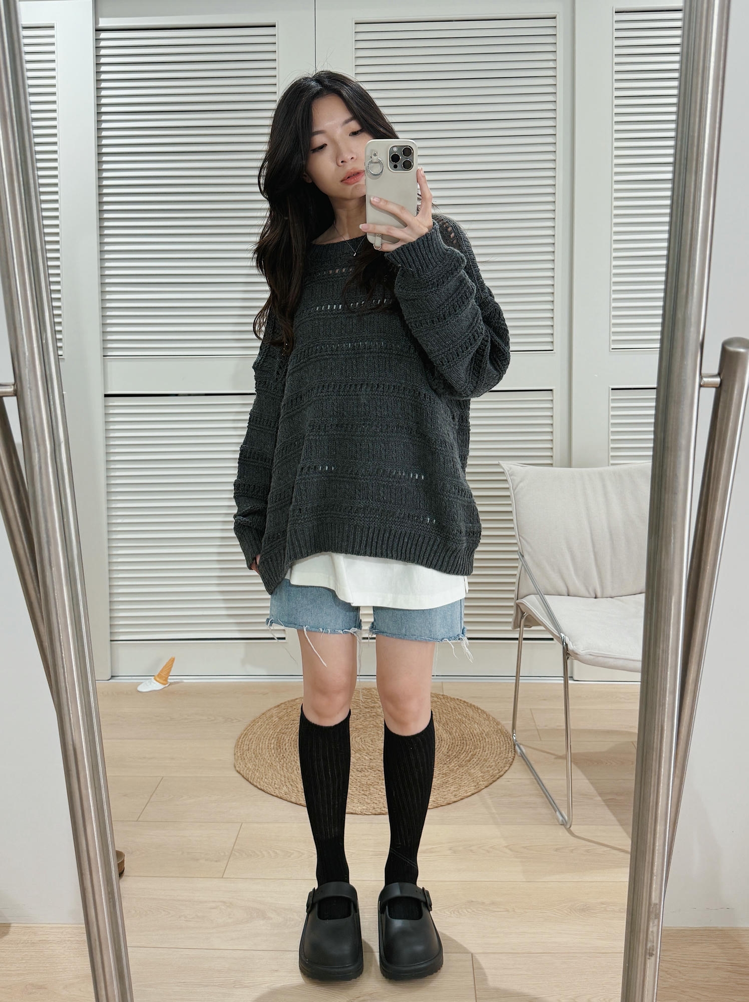 ✔ 材質:中厚款針織,柔軟但不扎,洞洞編織讓毛衣更有造型~