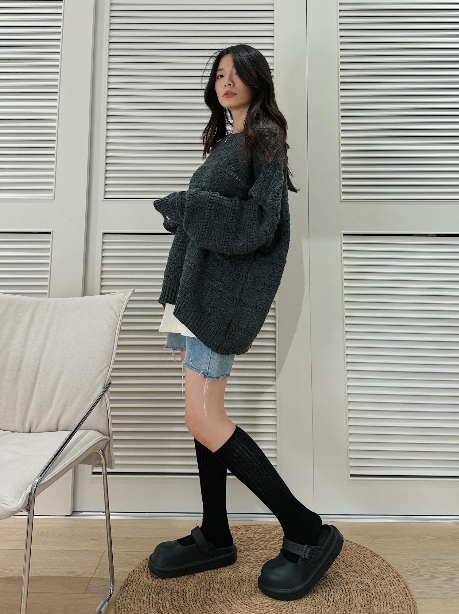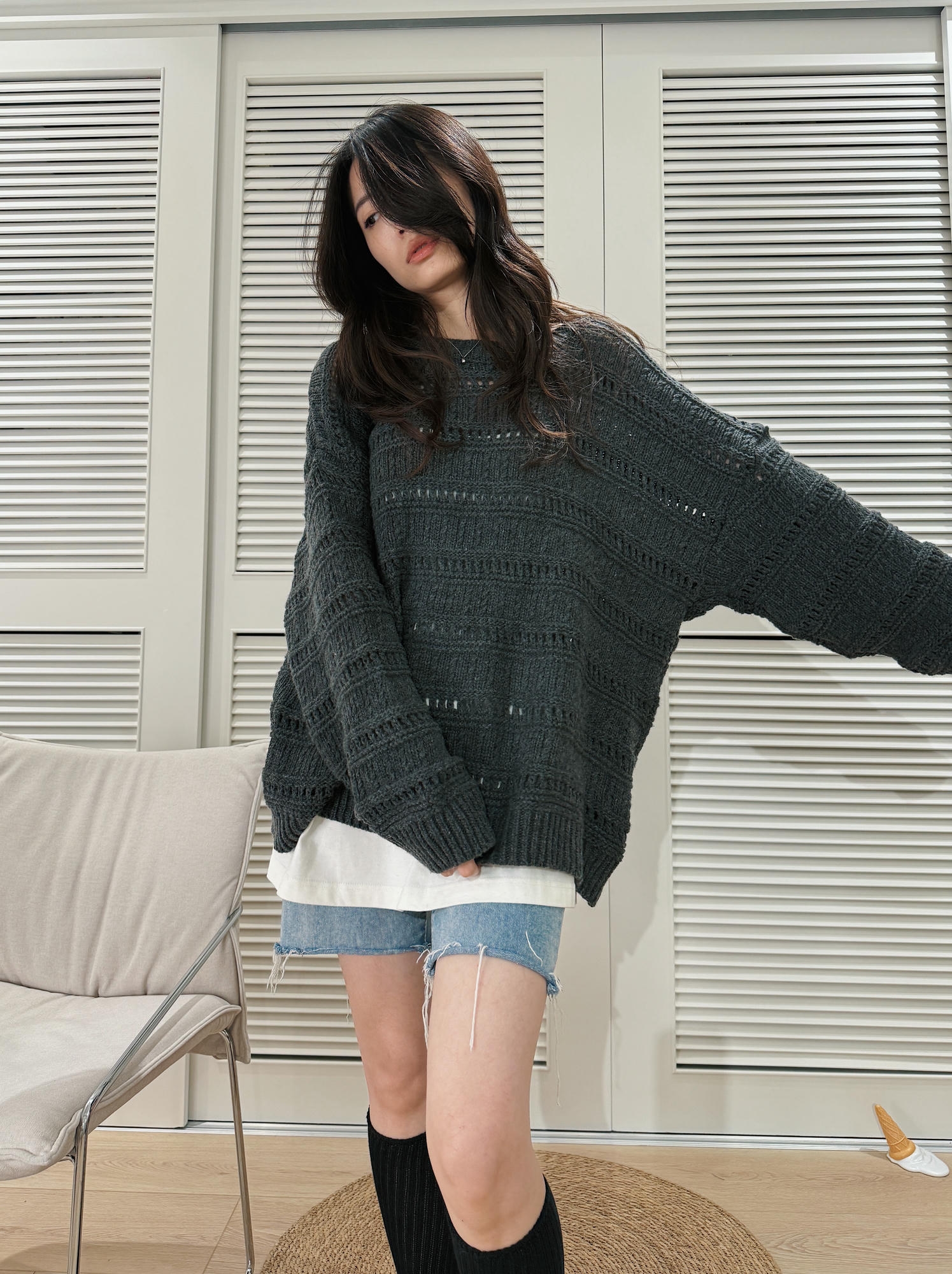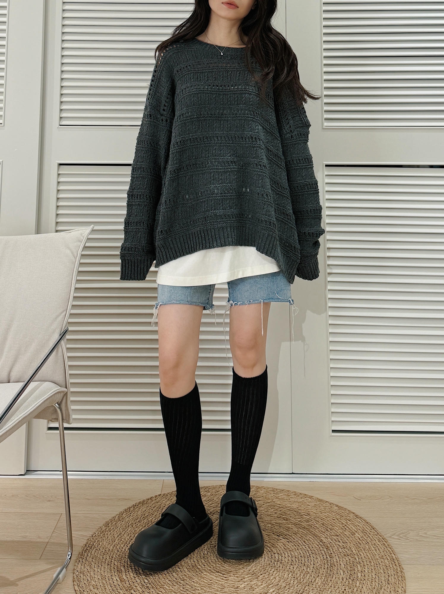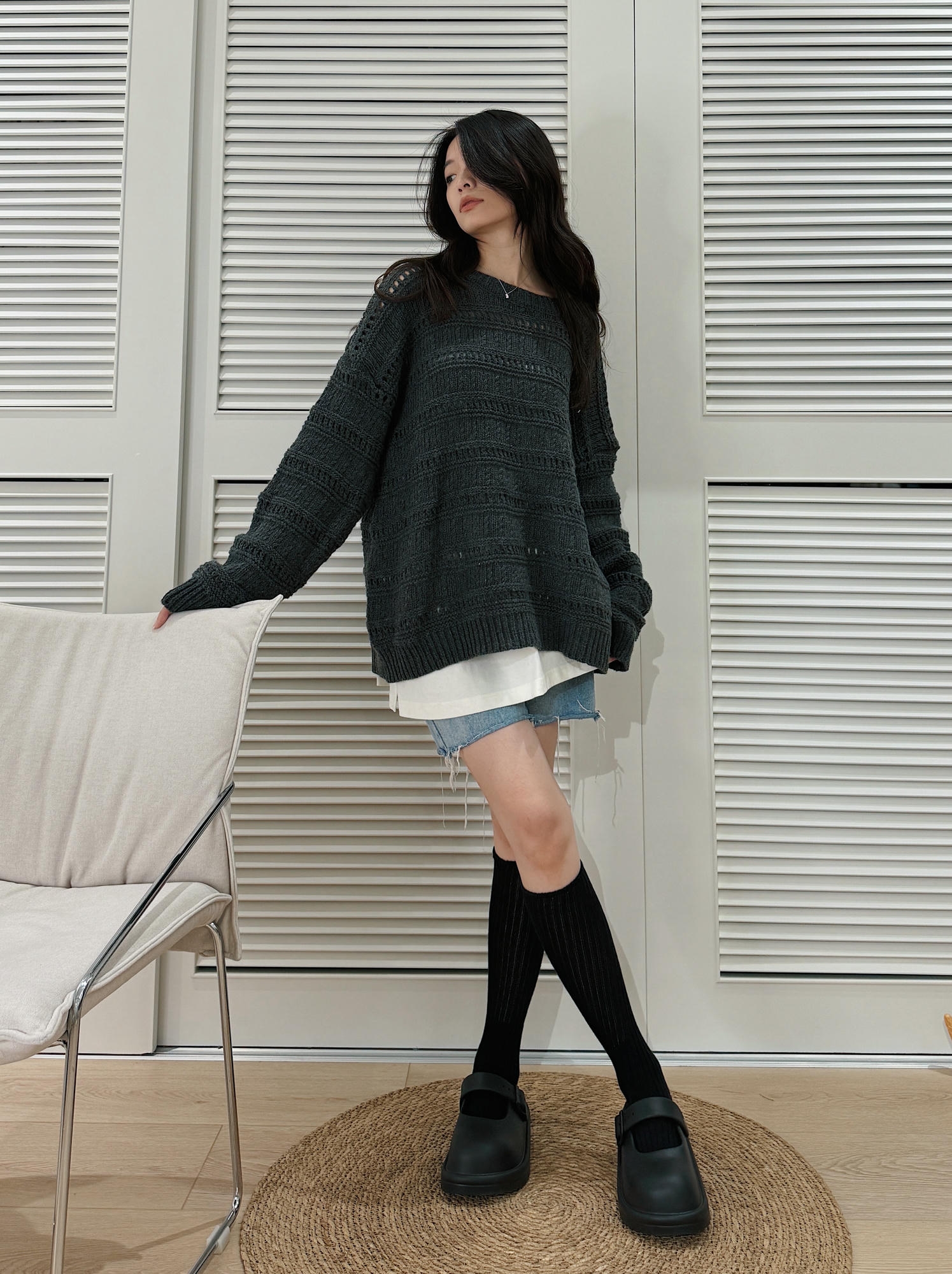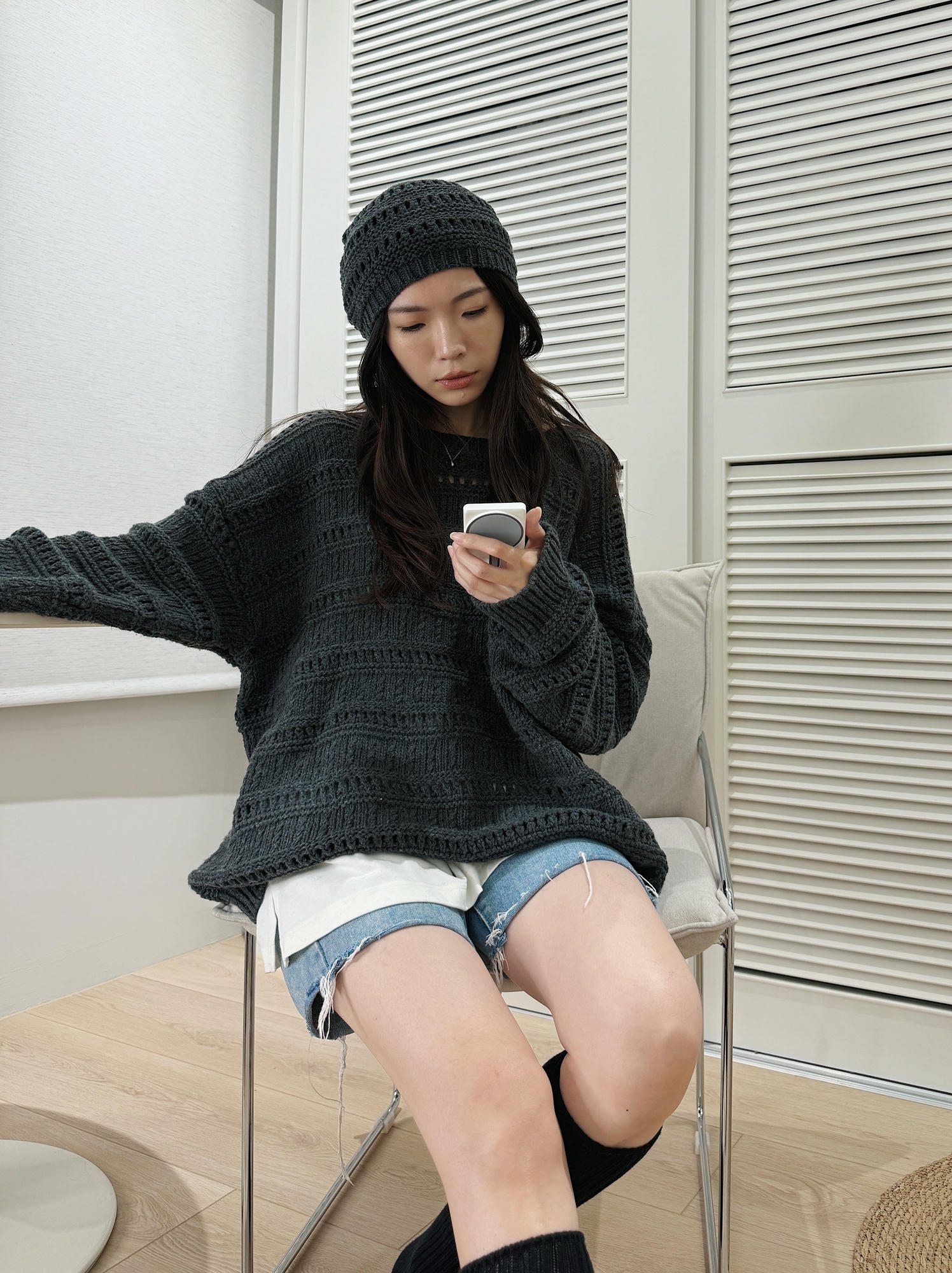 ✔ 材質:中厚款針織,柔軟但不扎,洞洞編織讓毛衣更有造型~