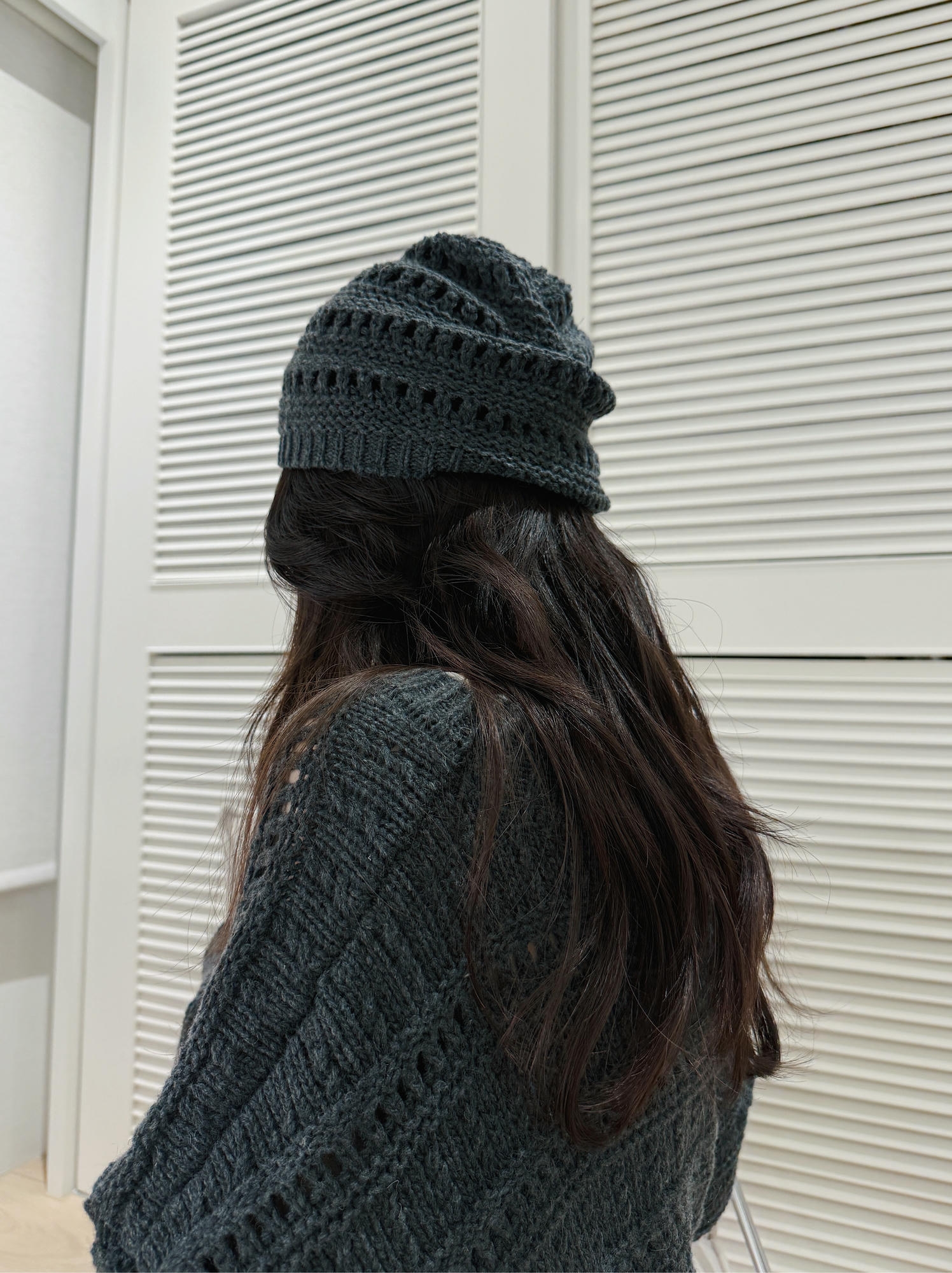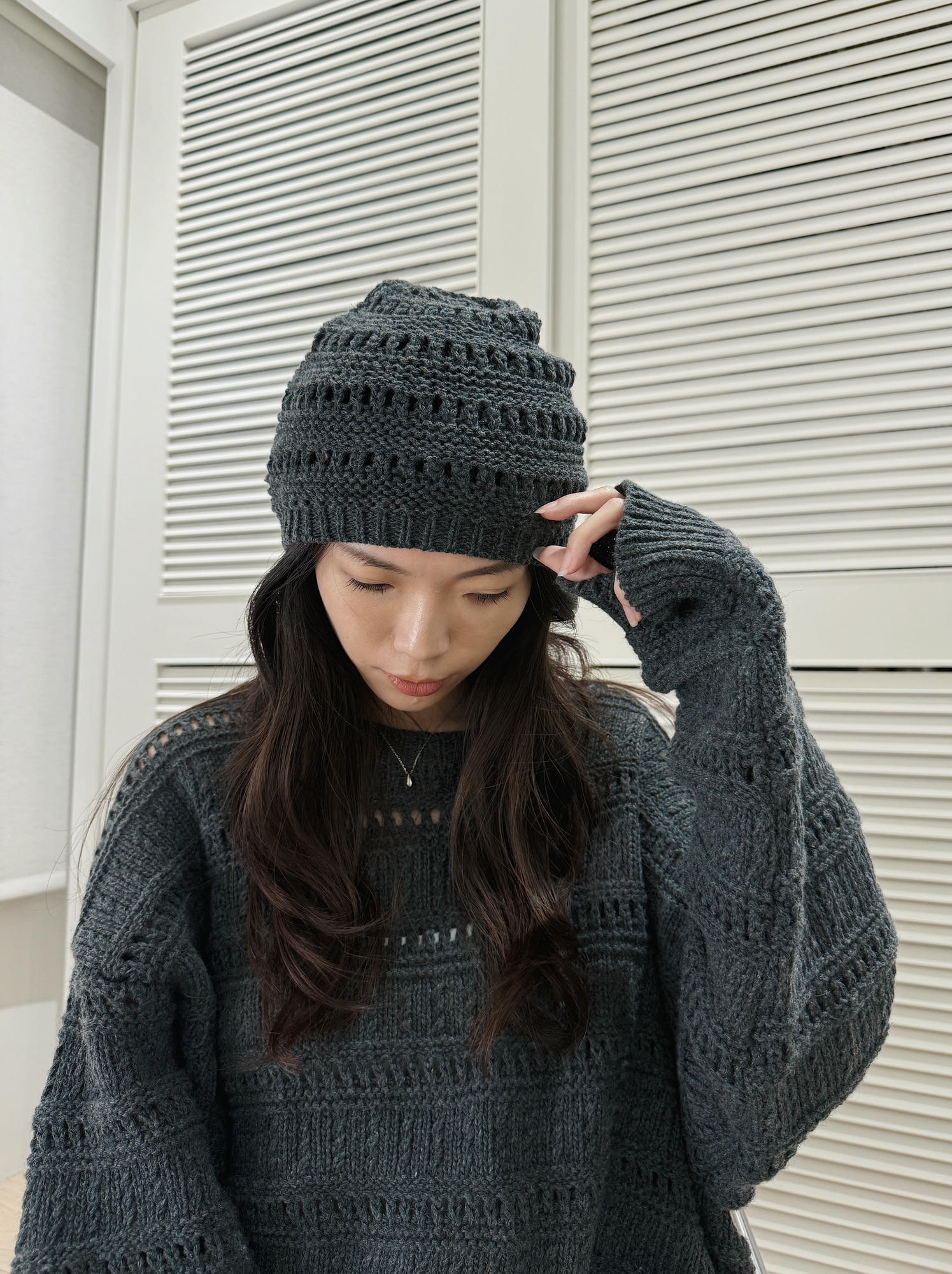 這款灰洞洞針織 × 毛帽組,就是那種一套上身就覺得: