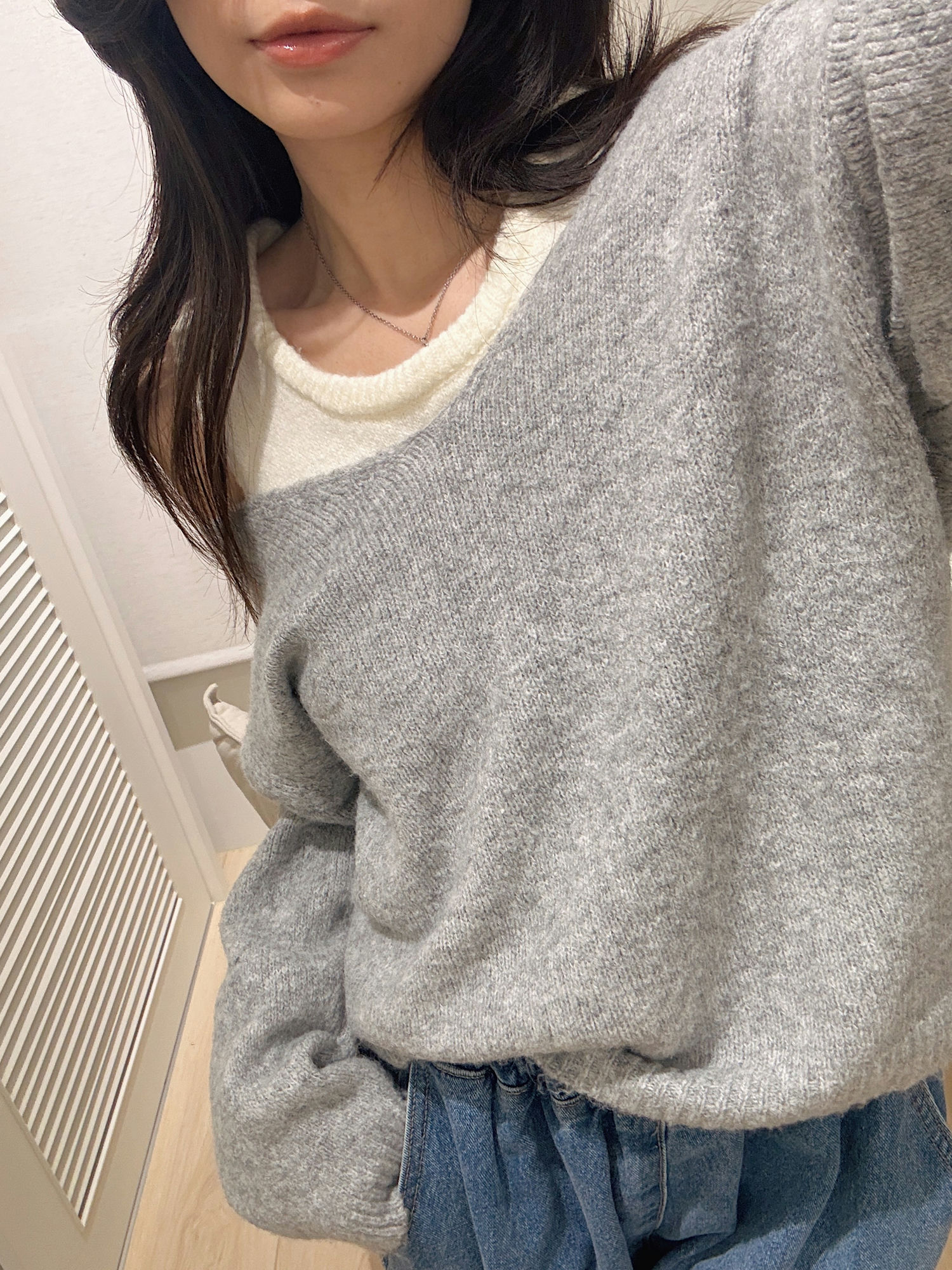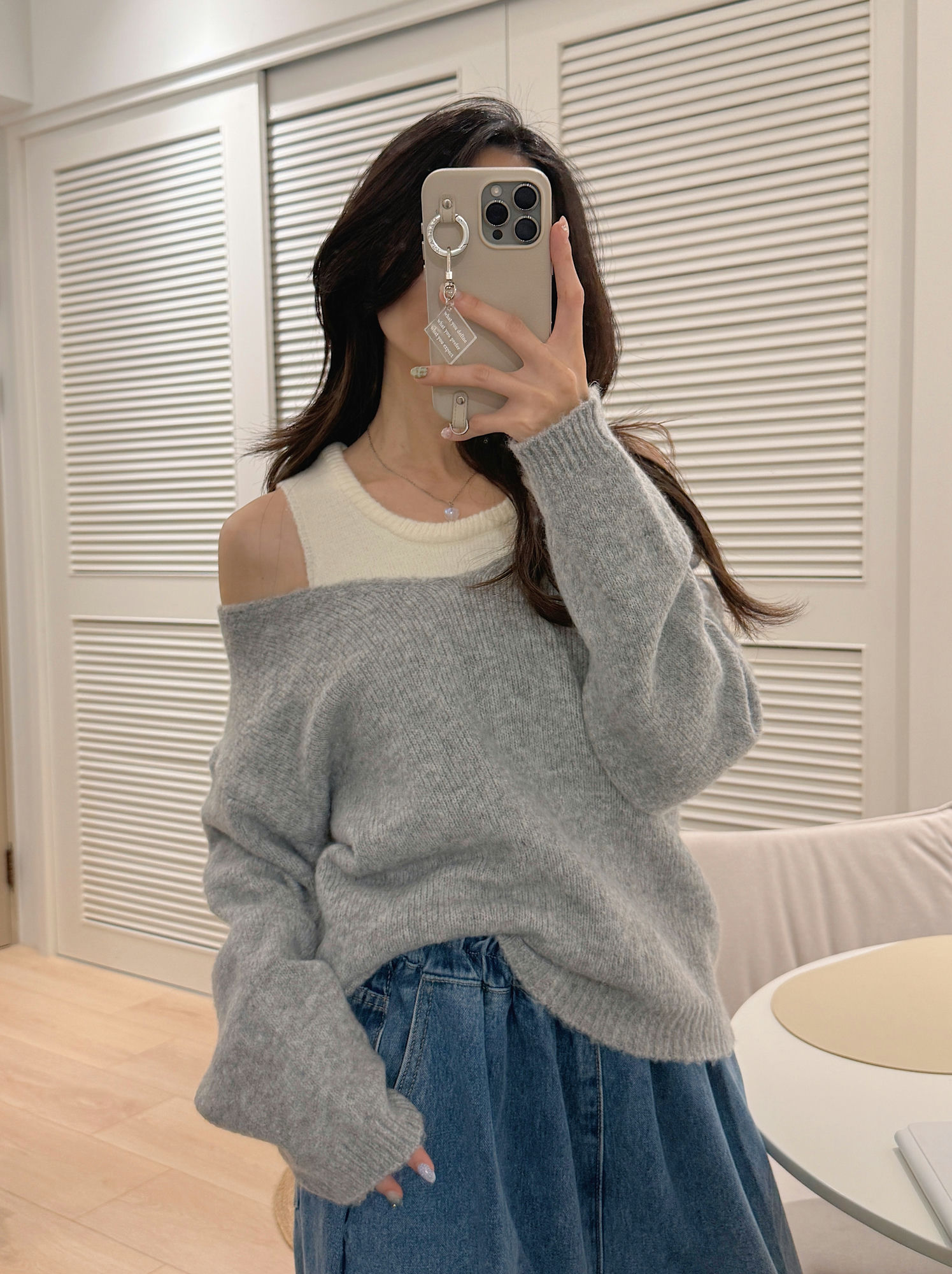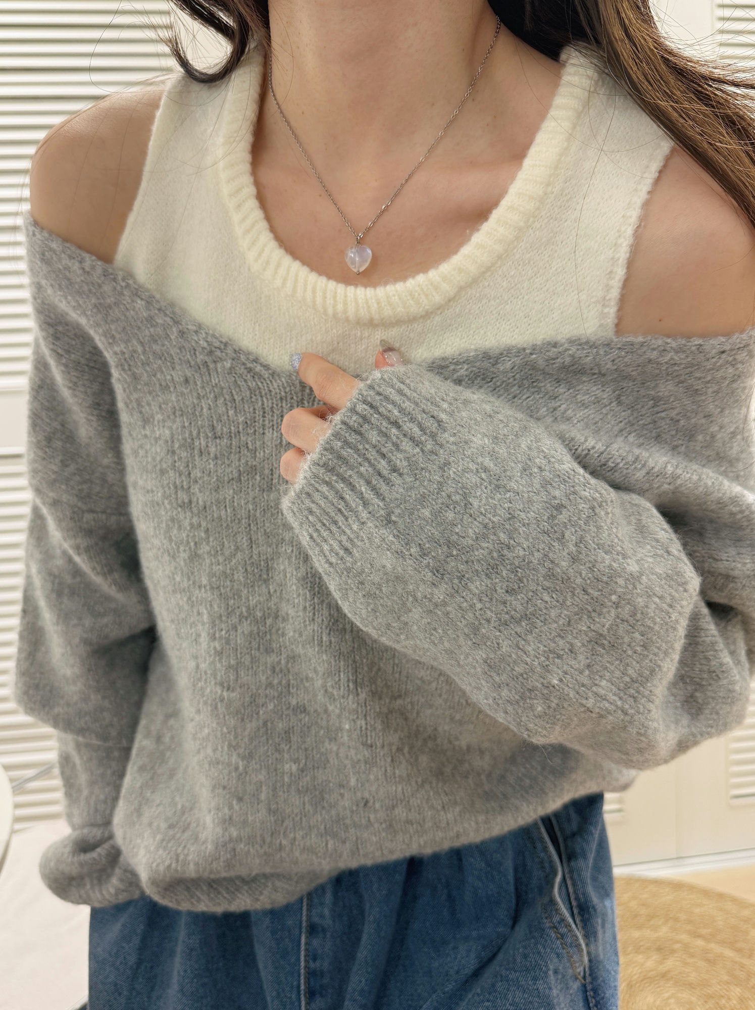#韓國 #長袖針織 #基本款 #針織背心 #兩件式 #長袖毛衣 #露肩上衣