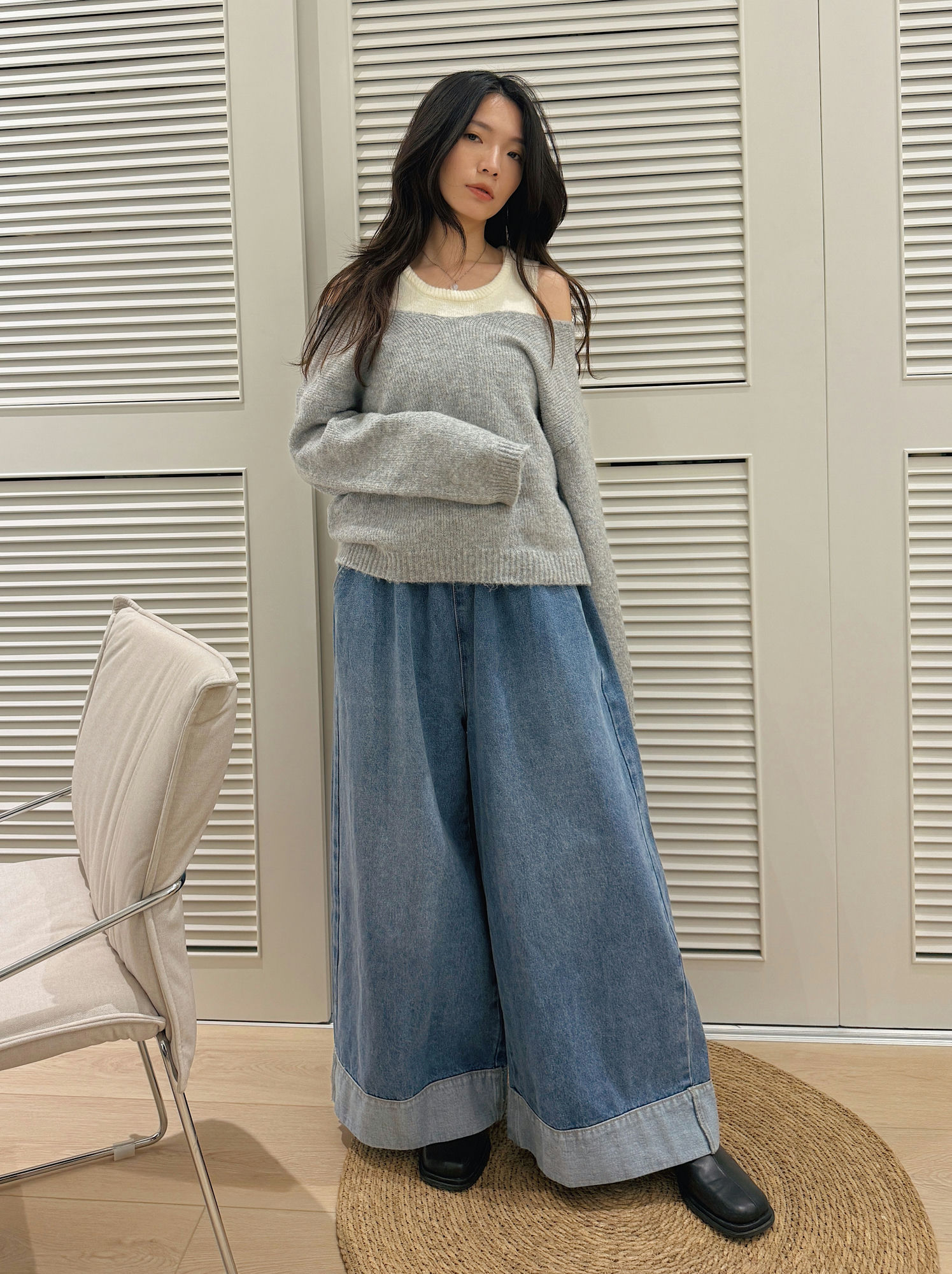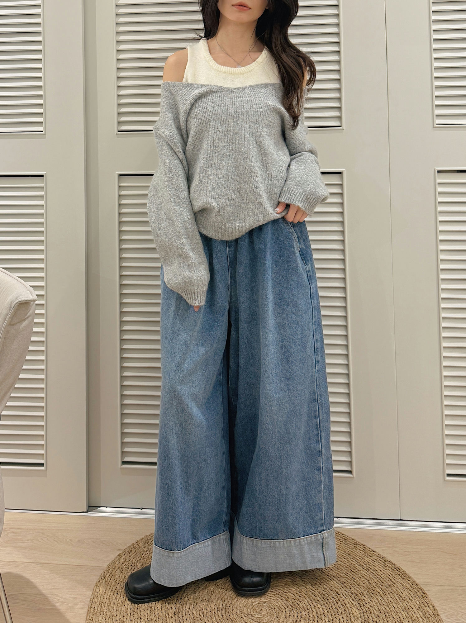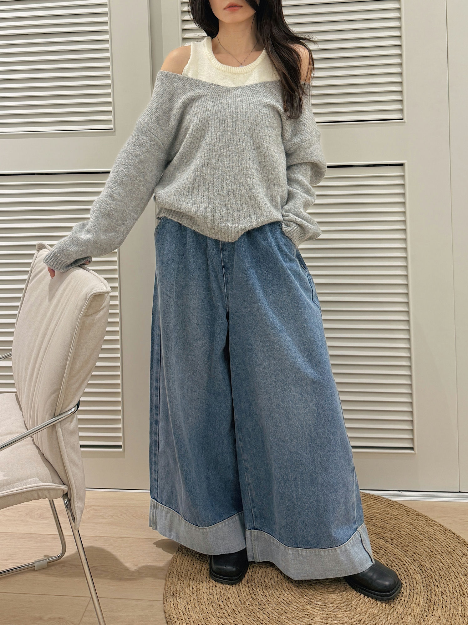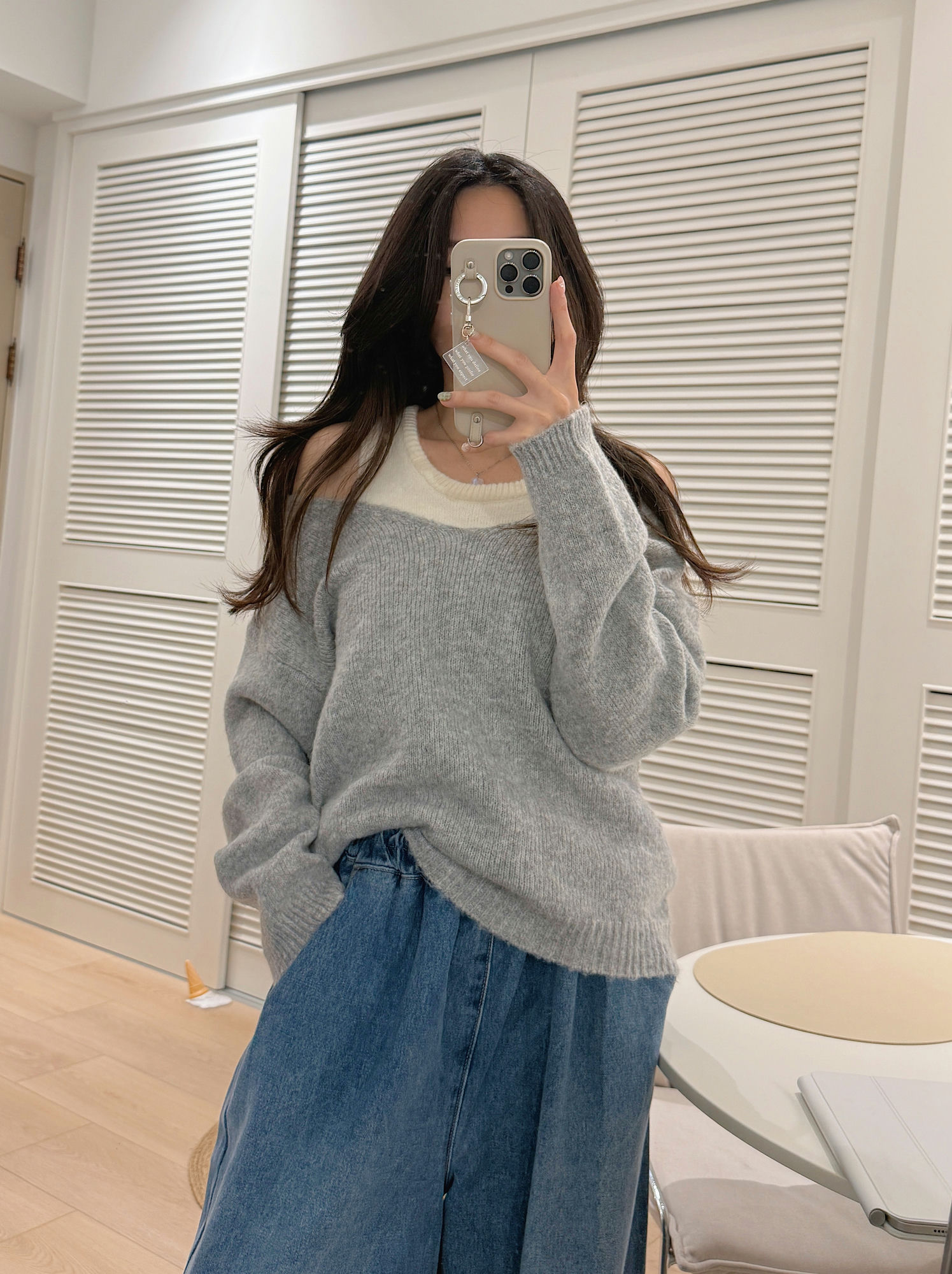 #韓國 #長袖針織 #基本款 #針織背心 #兩件式 #長袖毛衣 #露肩上衣