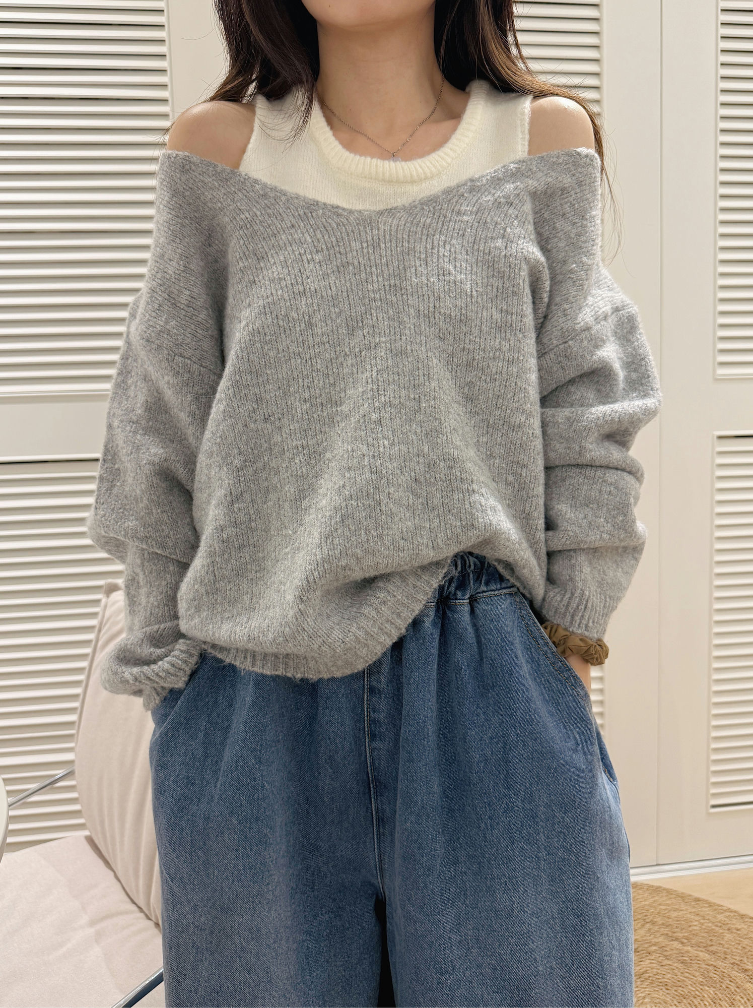 ・兩件式設計:內搭針織背心、外層寬鬆針織,可拆穿