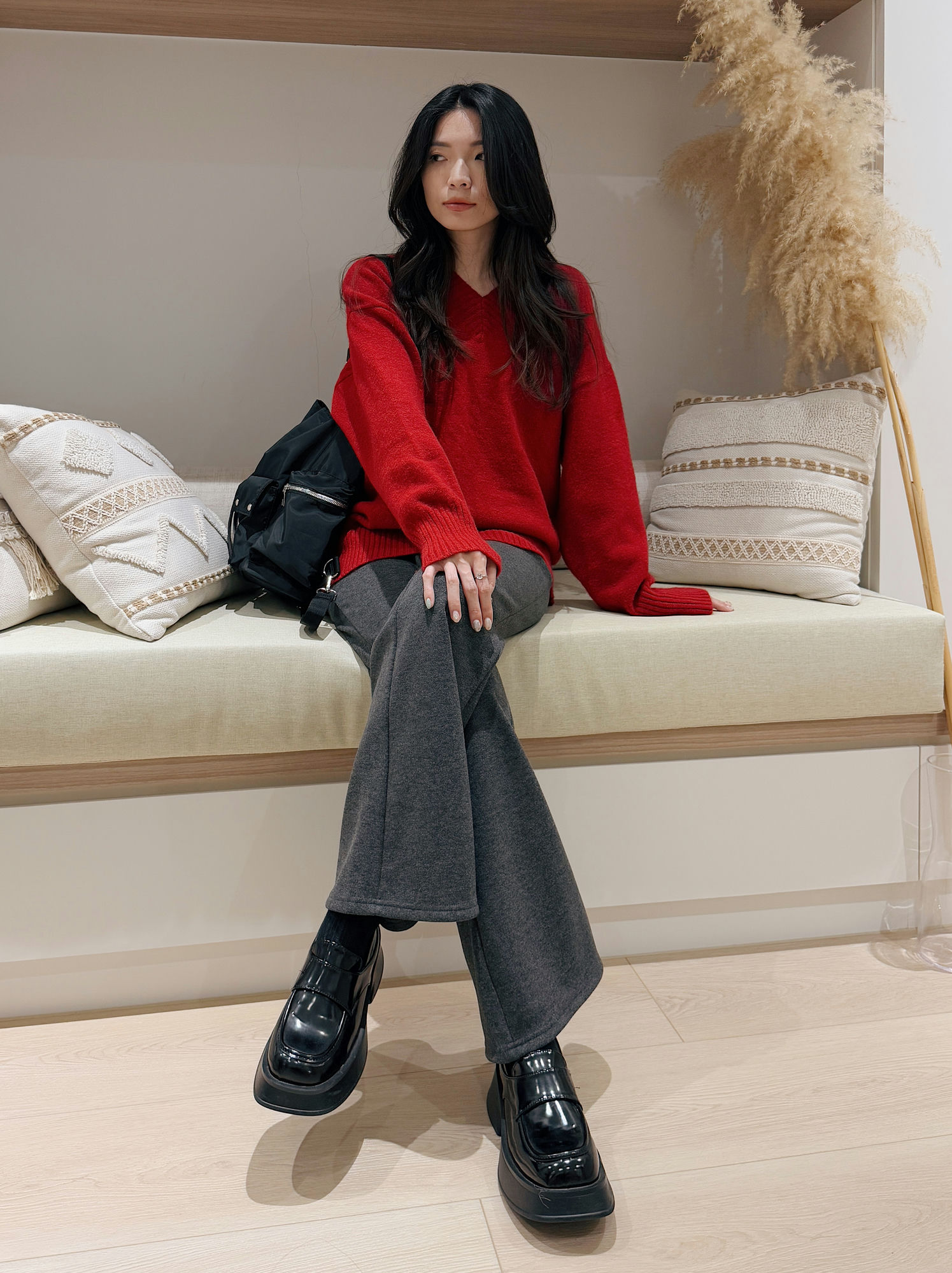 褲型是順順落下的直筒版型,不緊身,反而能修飾腿型~👍🏻