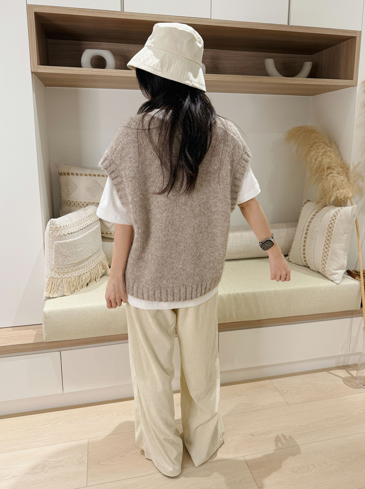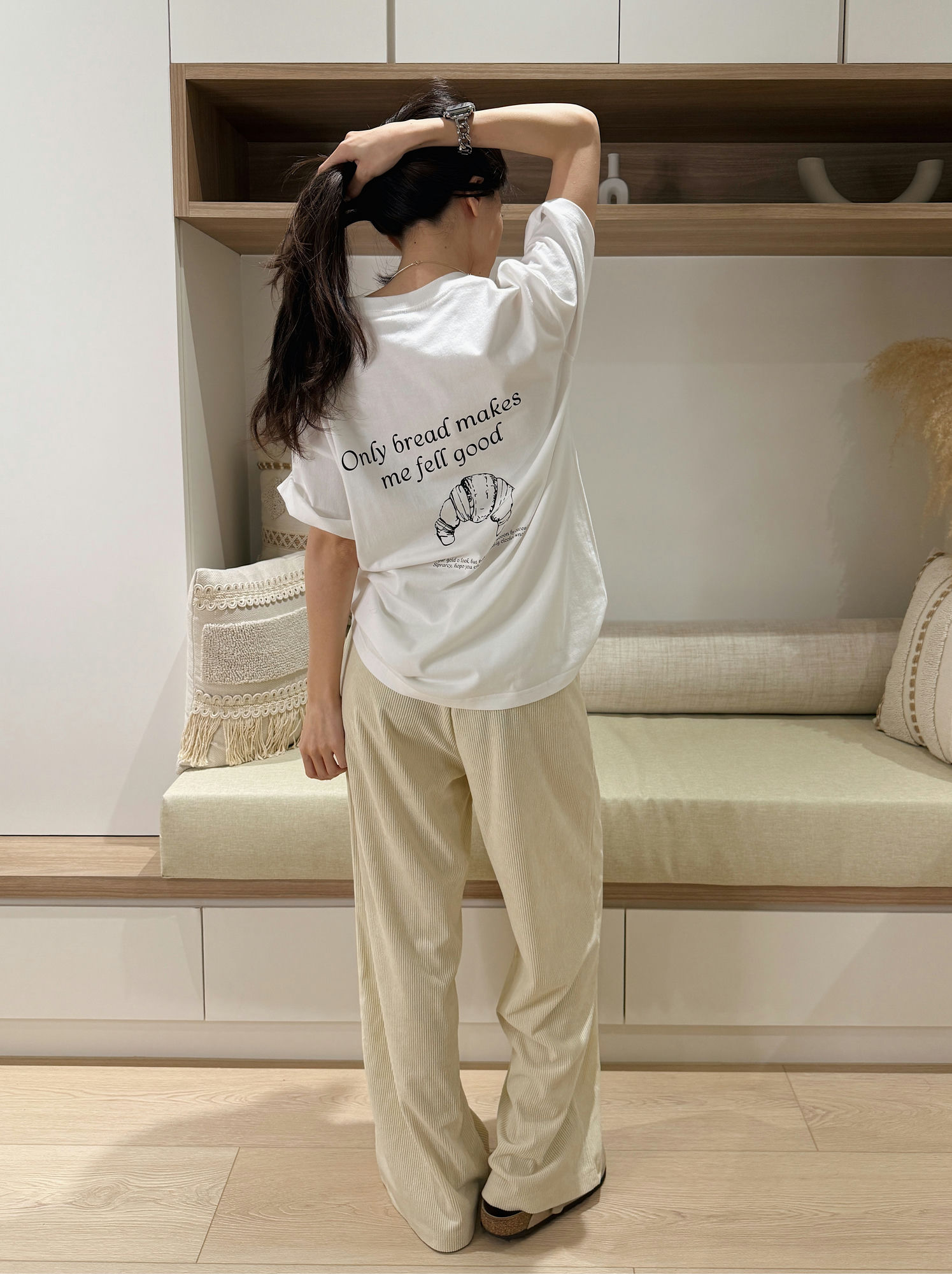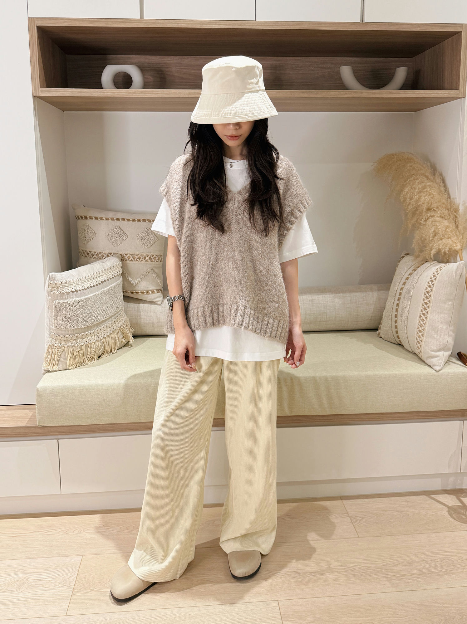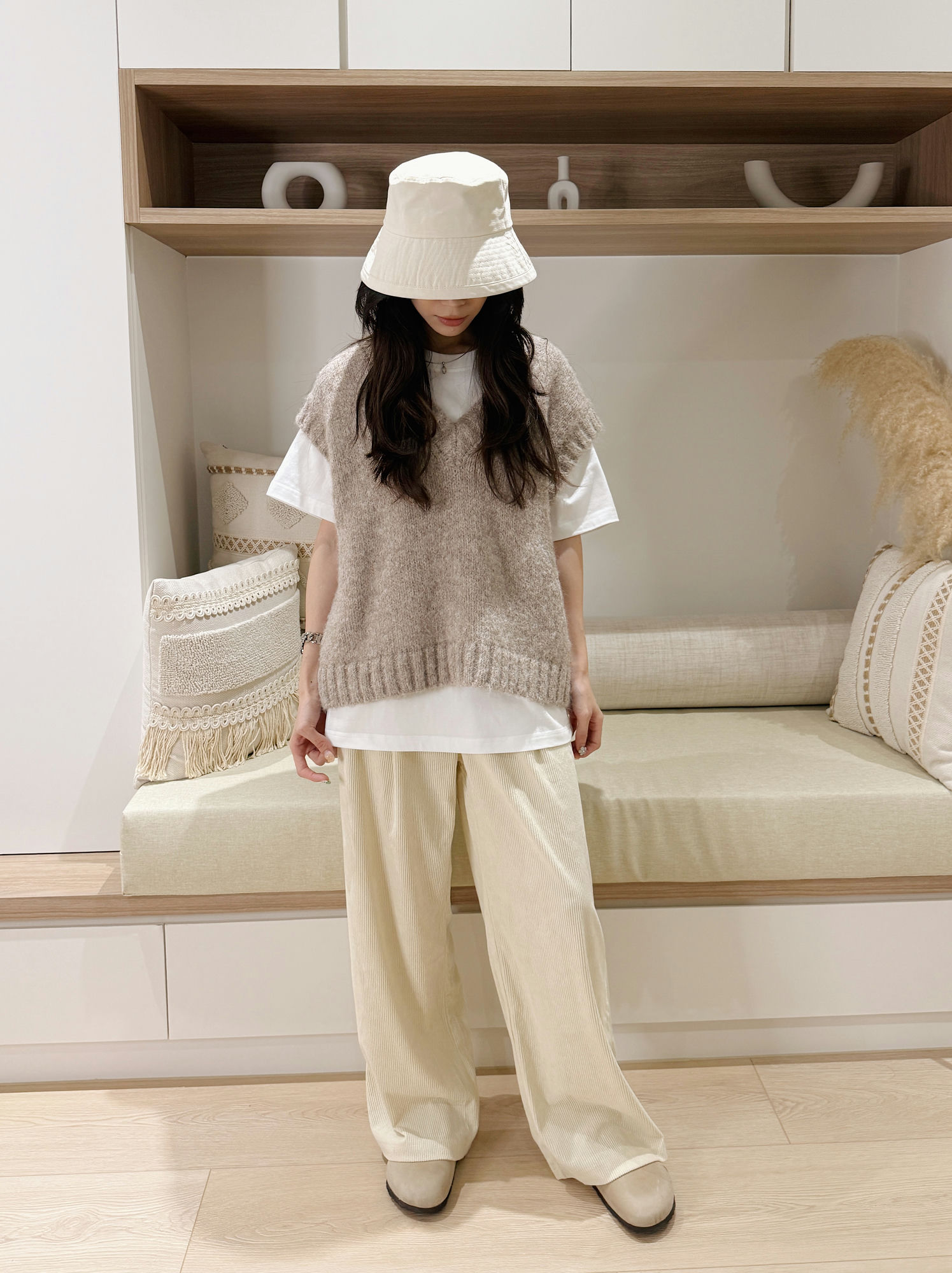 這件奶油色燈芯絨直筒寬褲,