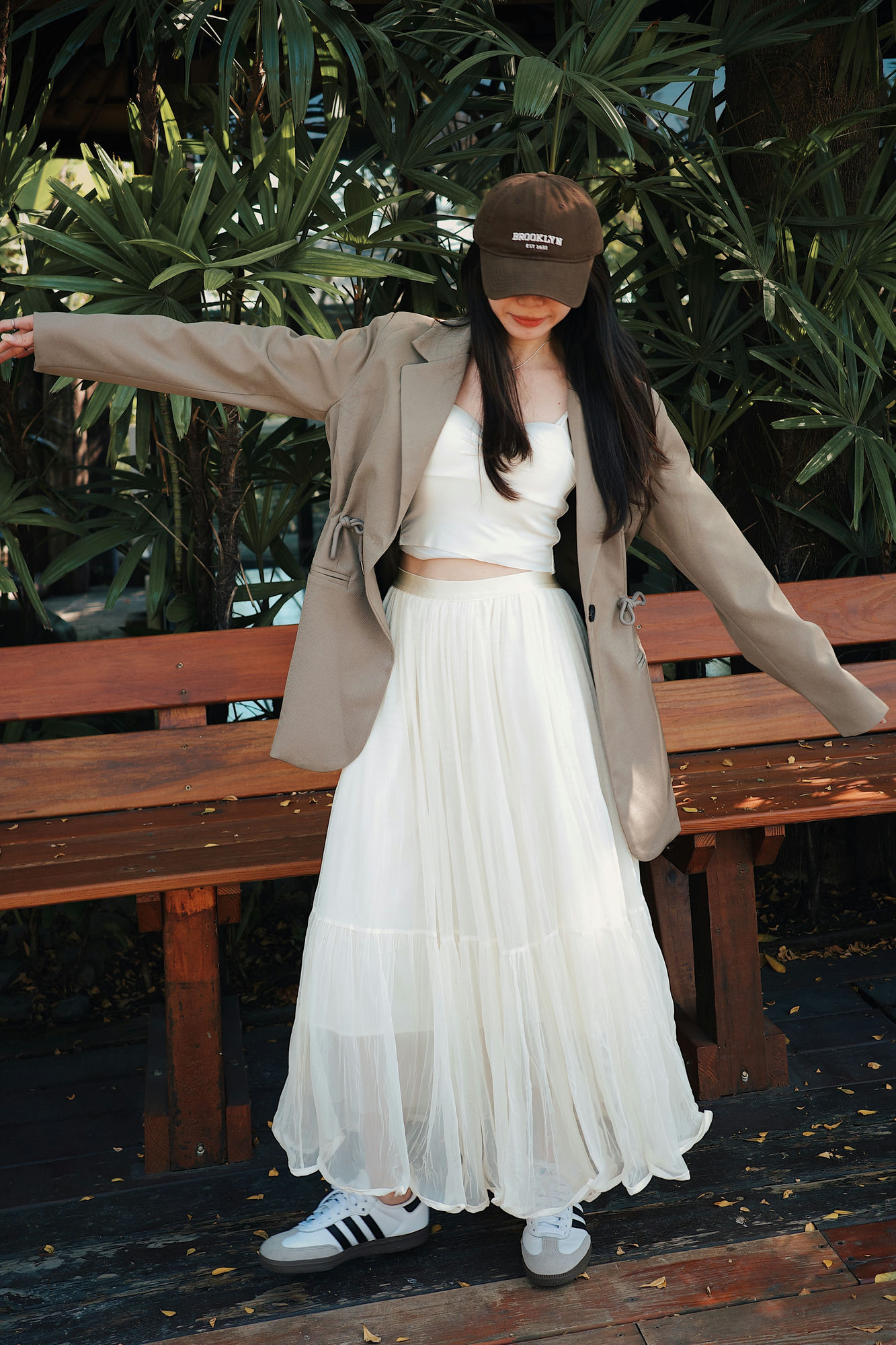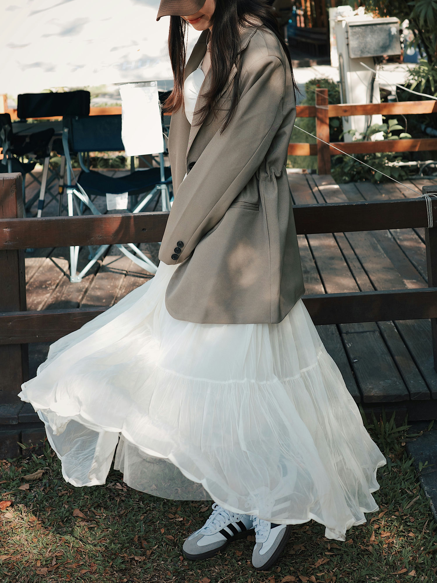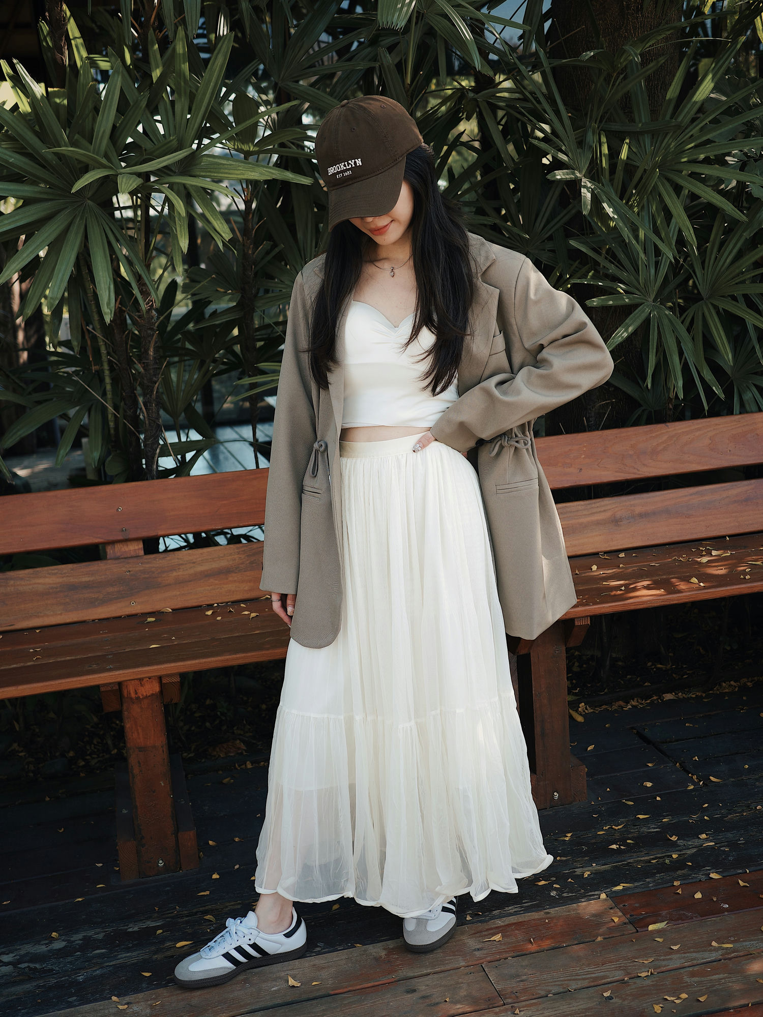 跟著這款溫柔純淨的紗裙,一起輕盈地前進吧!💖