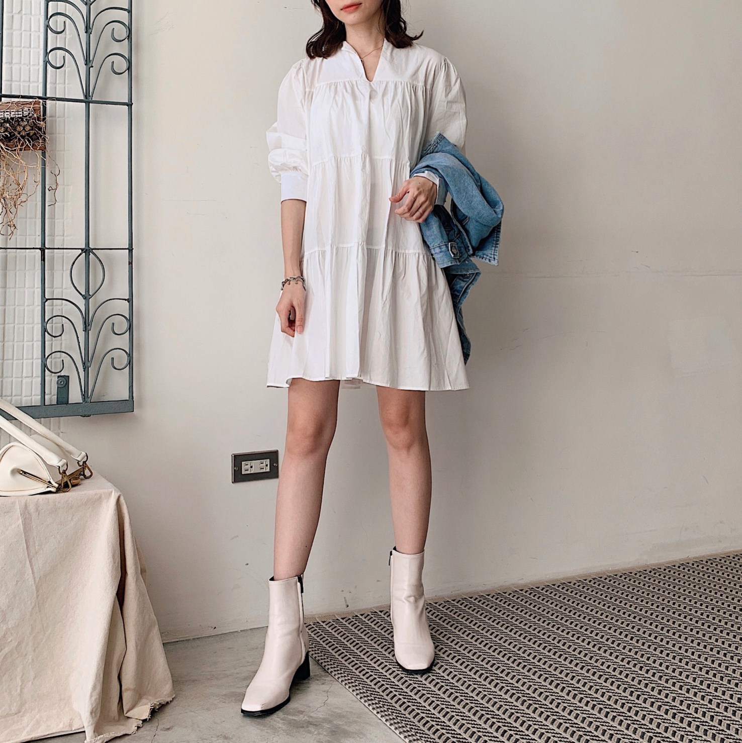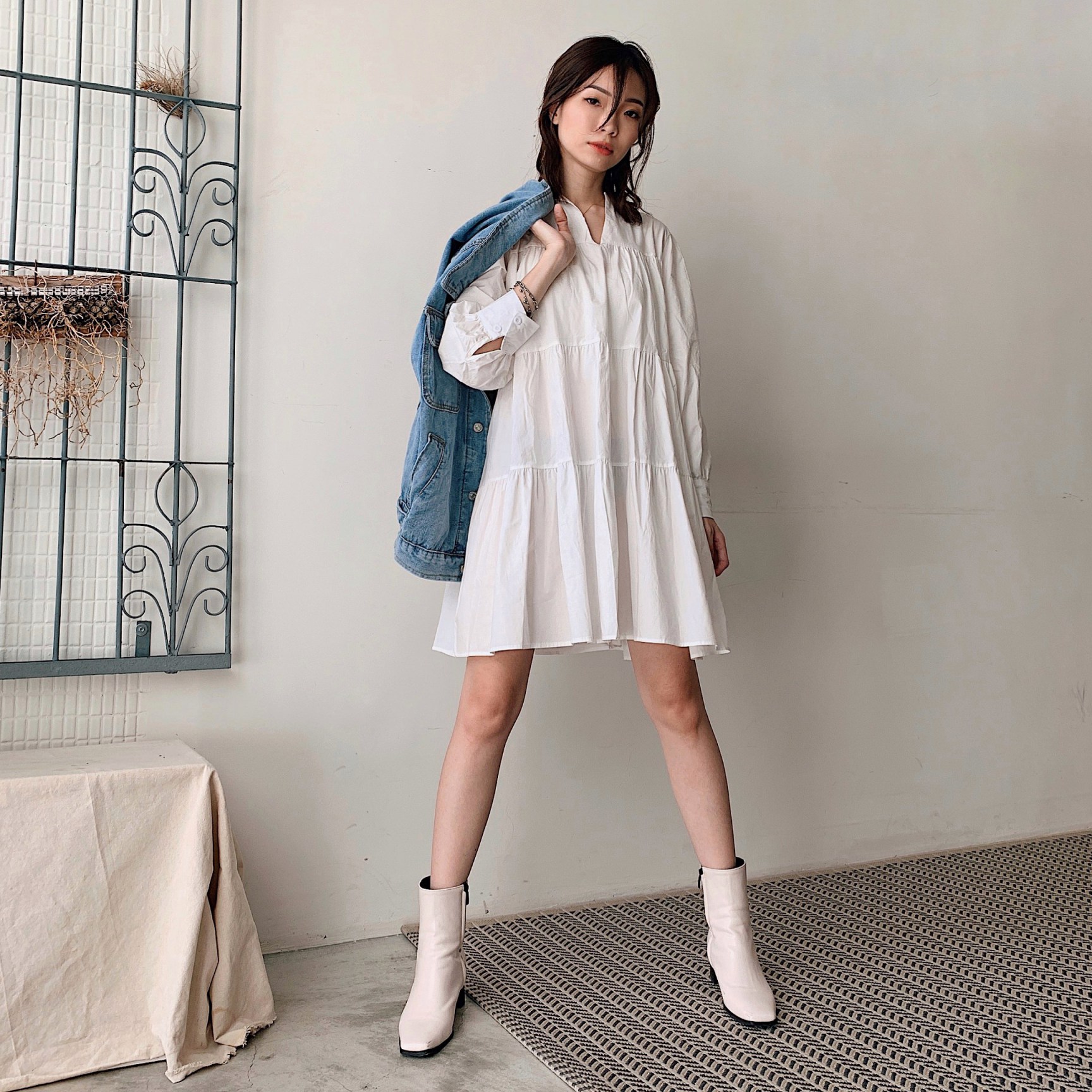 #韓國 #襯衫洋裝 #短版洋裝 #長袖洋裝 #泡泡袖 #婚禮洋裝