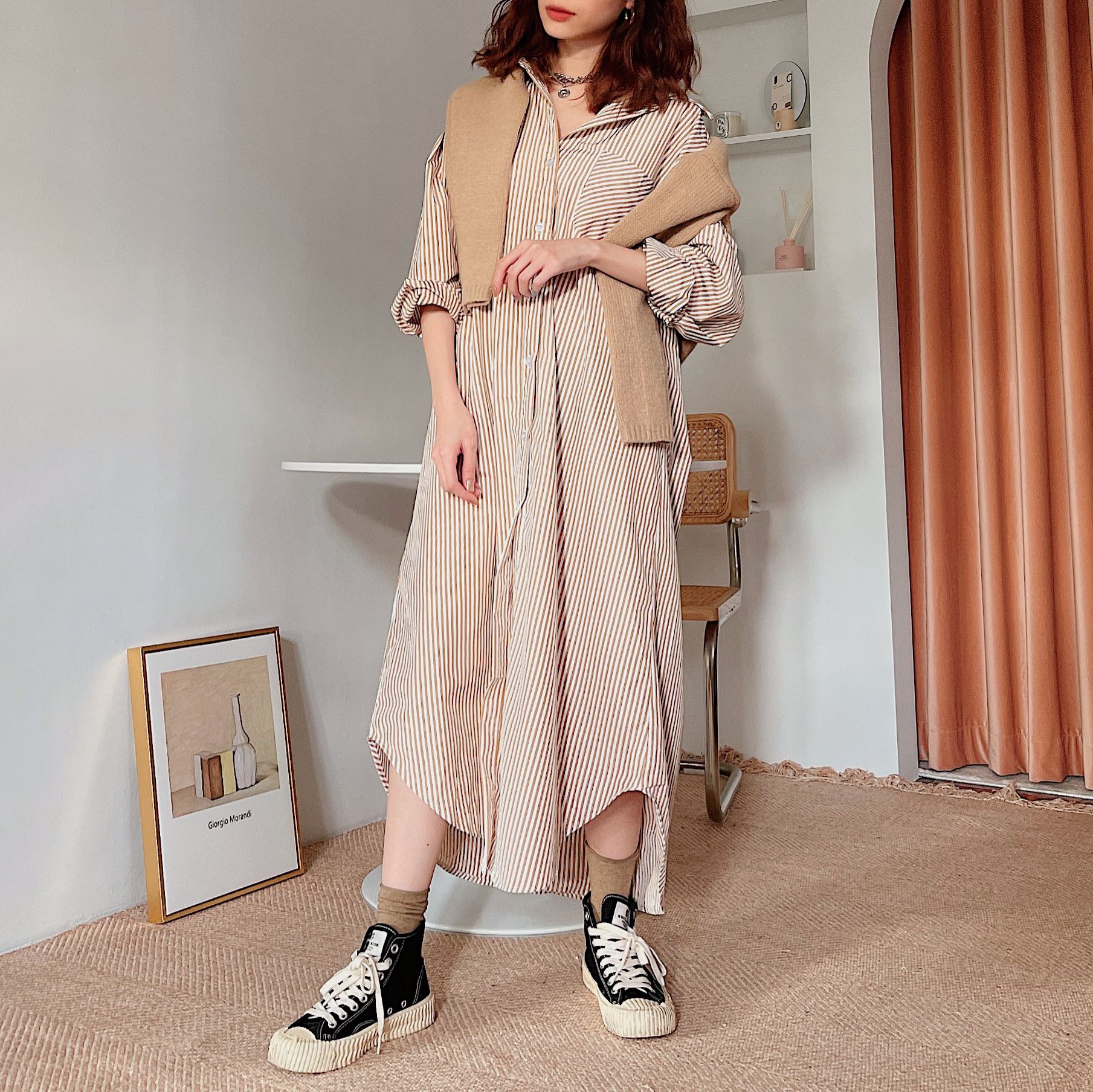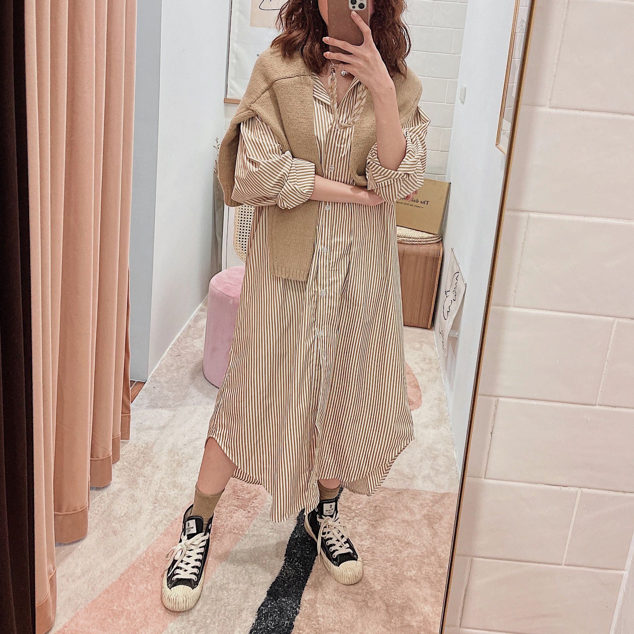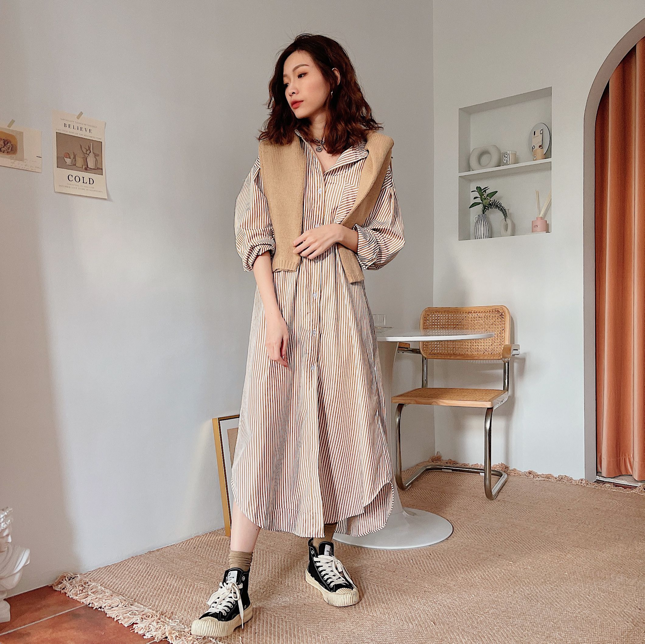 #韓國 #長版洋裝 #長袖洋裝 #襯衫洋裝 #孕婦裝 #條紋洋裝 #休閒洋裝